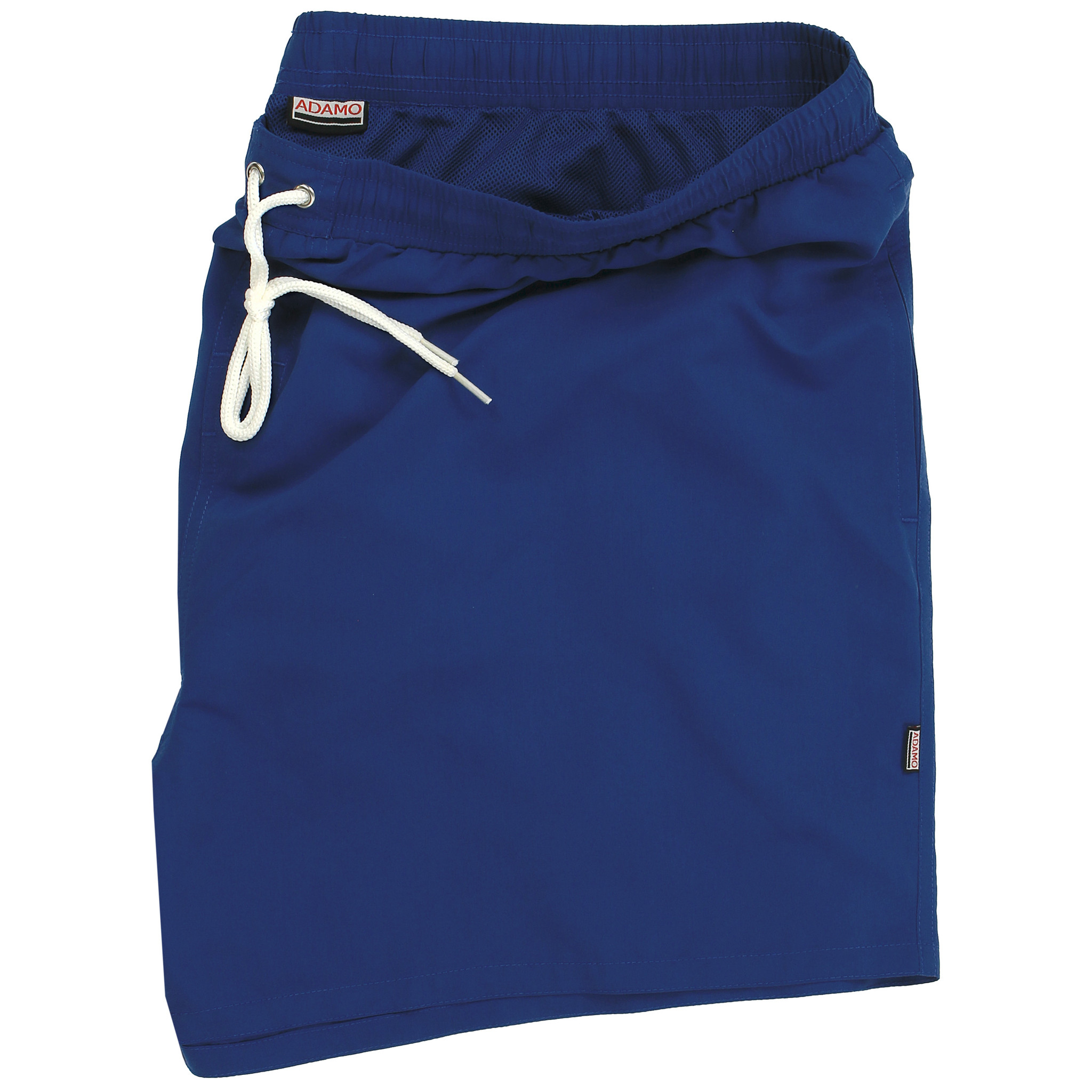 Eine Badeshorts in der Farbe Königsblau mit kurzen Beinen, zwei Taschen und einer Gesäßtasche. Die Badeshorts haben außerdem ein Gummiband mit Kordelzug.