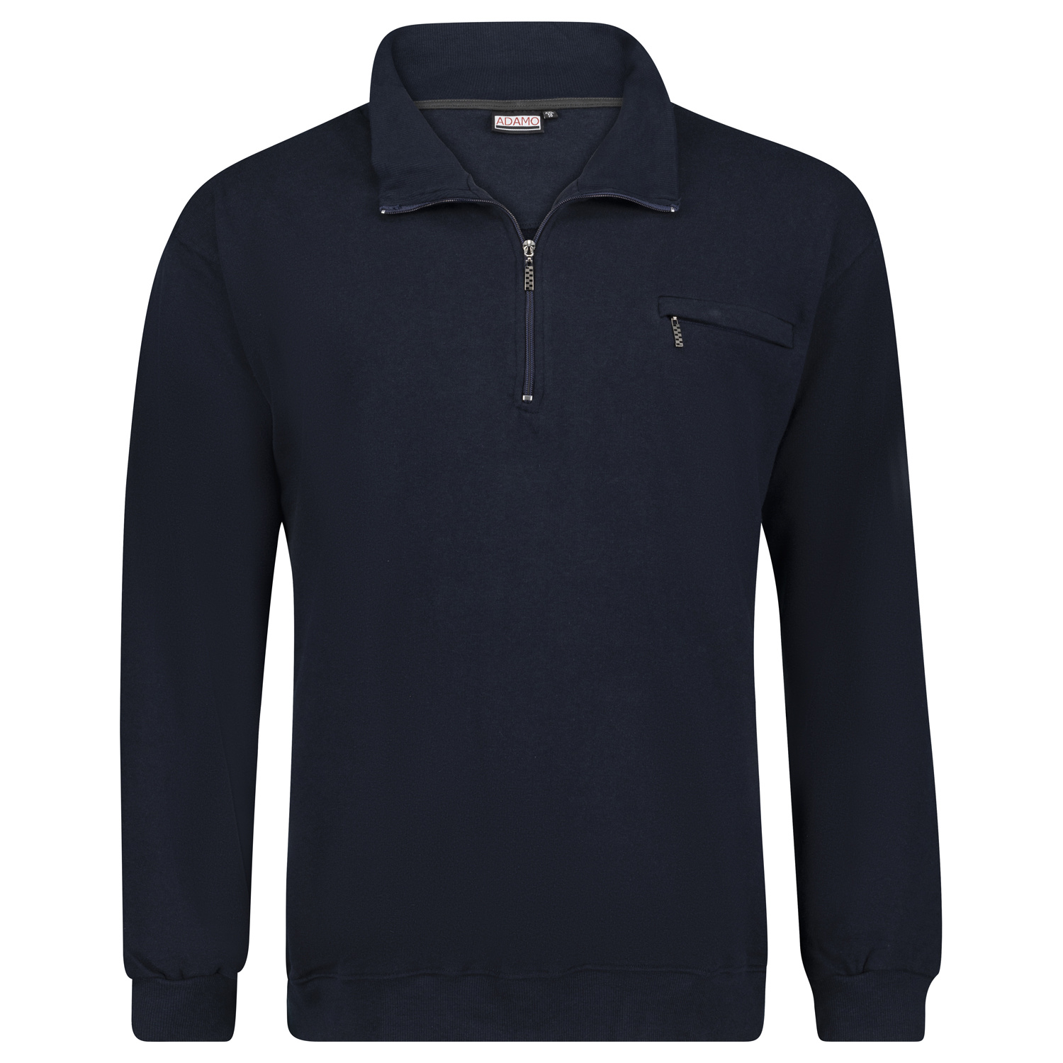 Troyer in Marine mit Reißverschluss und Brusttasche mit Reißverschluss, 100 % Baumwolle / Italian Fleece 250.