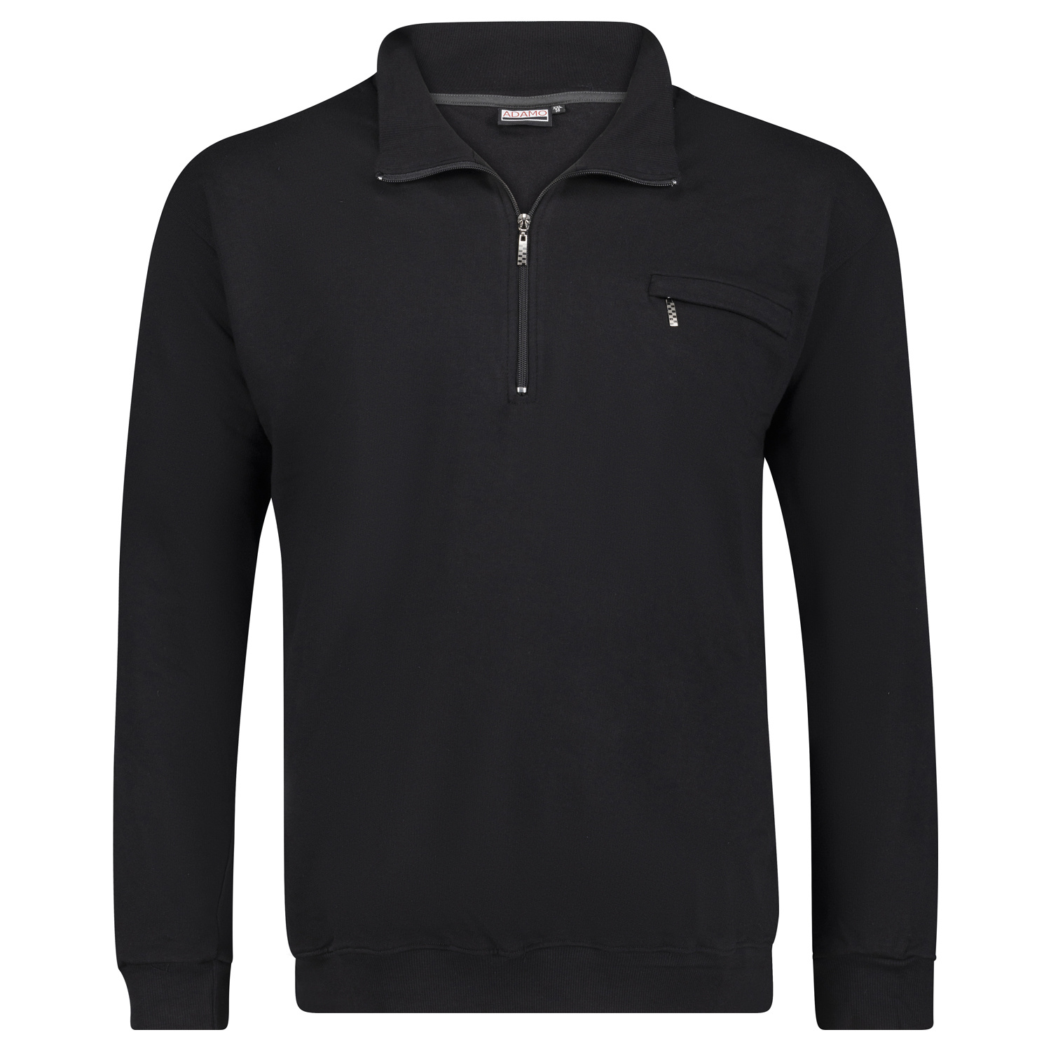 Troyer in Schwarz mit Reißverschluss und Brusttasche mit Reißverschluss, 100 % Baumwolle / Italian Fleece 250.