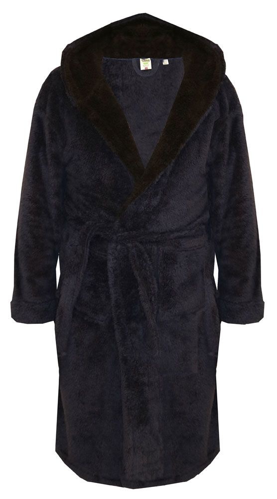 Ein wunderbar warmer Bademantel mit Taschen und Kapuze in Marineblau.