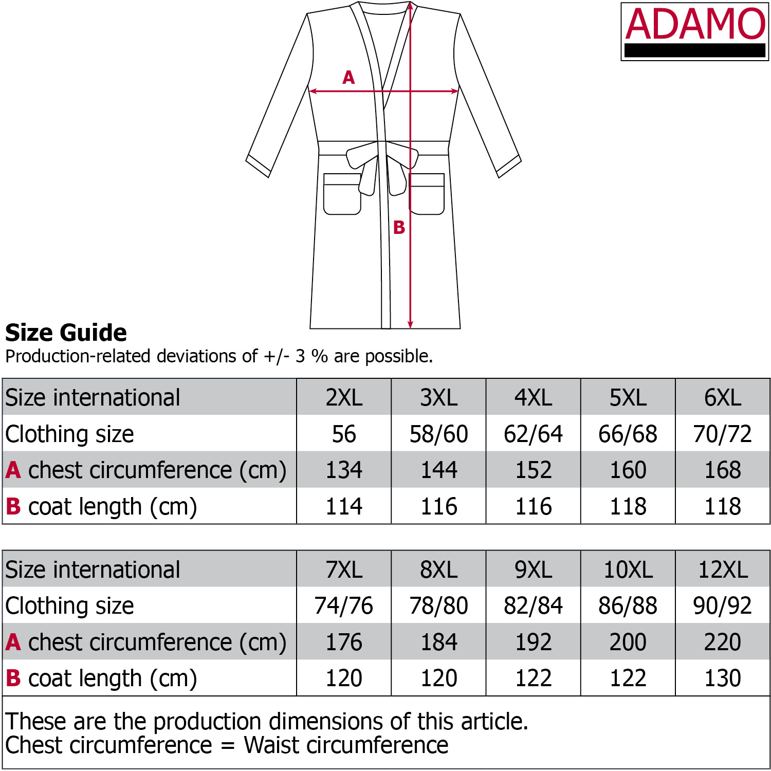 Ein schöner Bademantel in Weiß der Marke Adamo, ideal für den Sauna-/Schwimmbadbesuch oder einfach zum Tragen zu Hause nach dem Duschen. 100 % Baumwolle, Frottee, 420 g/m².