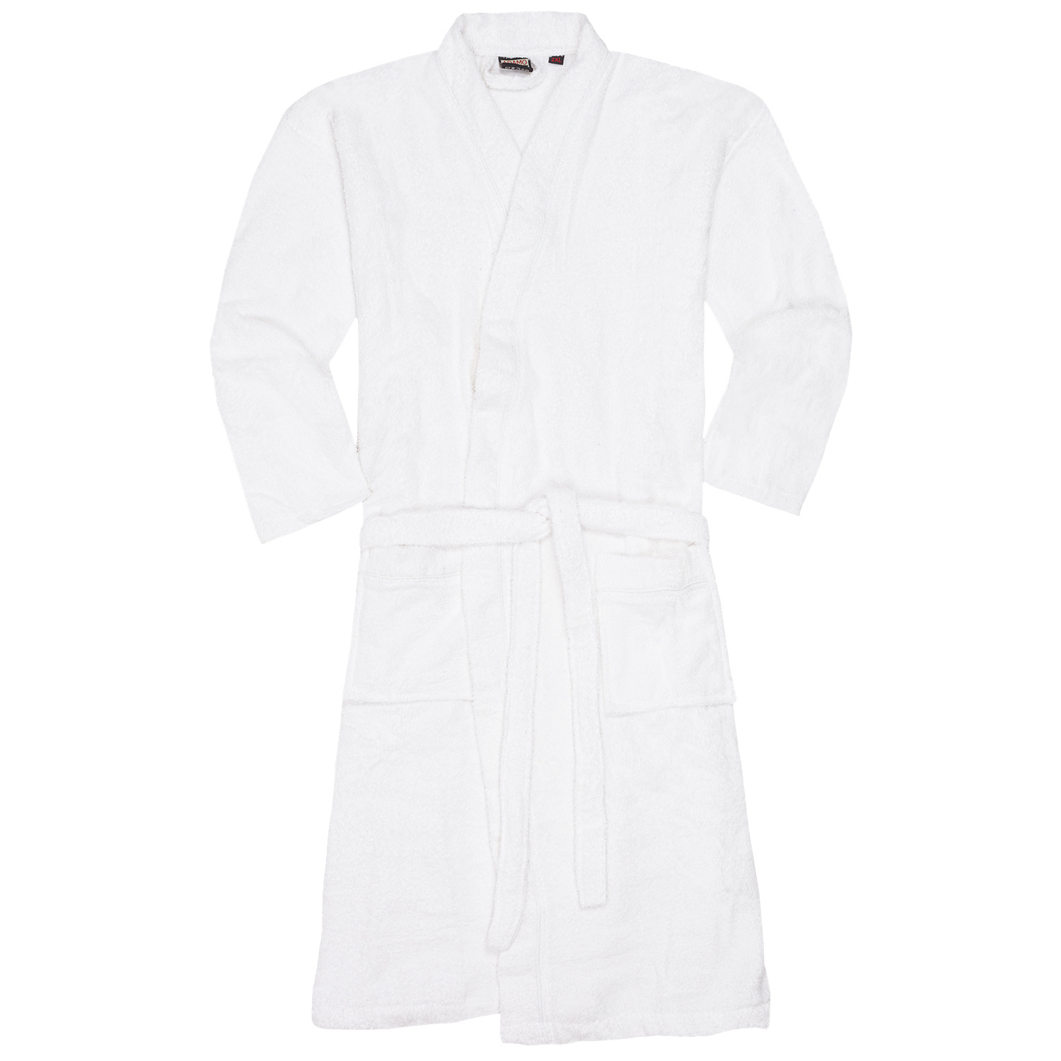 Ein schöner Bademantel in Weiß der Marke Adamo, ideal für den Sauna-/Schwimmbadbesuch oder einfach zum Tragen zu Hause nach dem Duschen. 100 % Baumwolle, Frottee, 420 g/m².