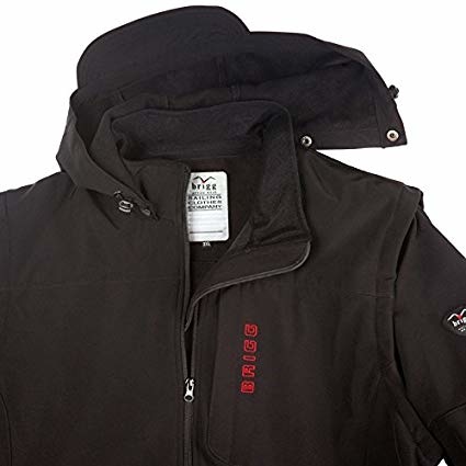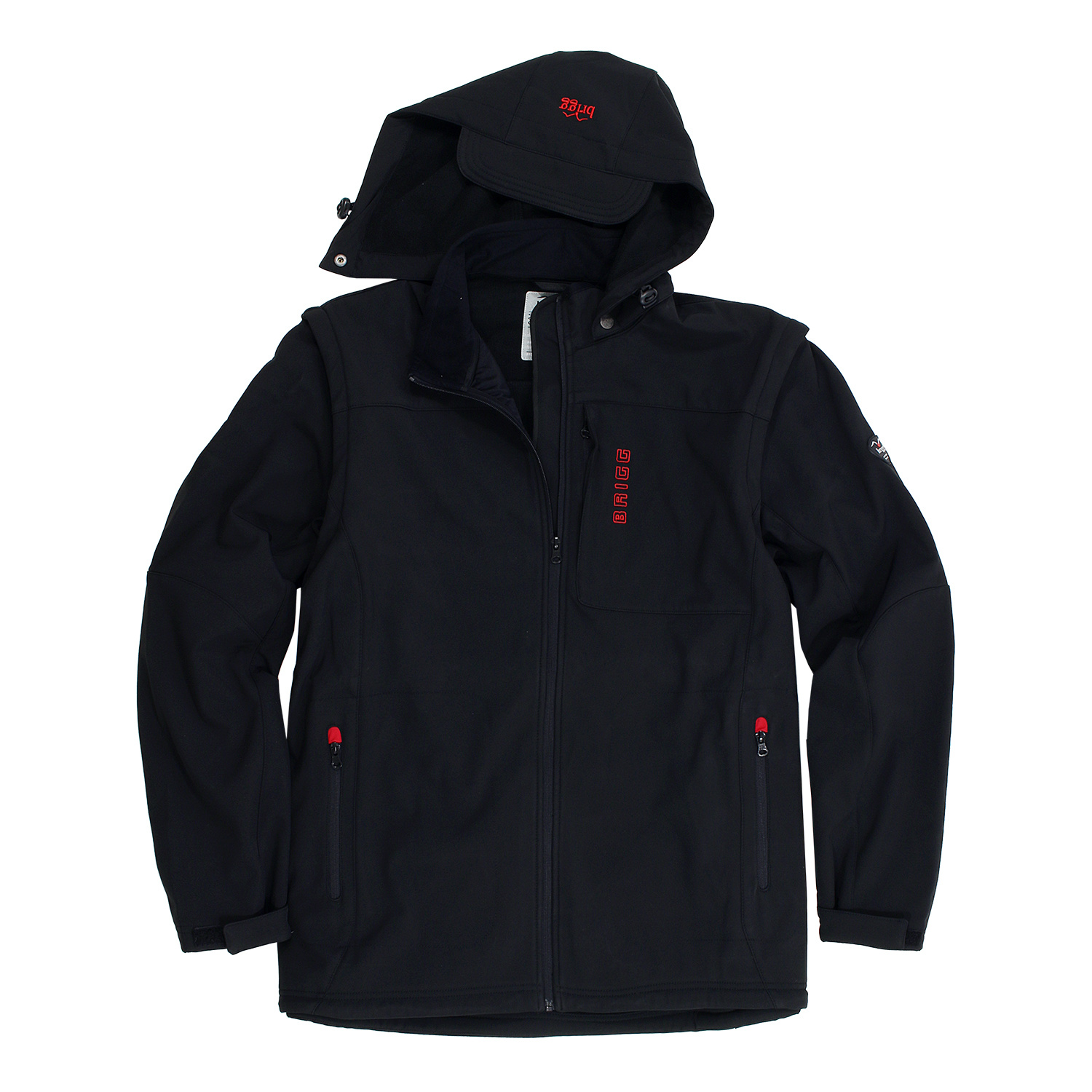 Brigg Softshelljacke in Schwarz, Jacke hat mehrere Taschen mit Reißverschluss und hat eine mittels Druckknöpfen abnehmbare Kapuze, die Ärmel der Jacke lassen sich ebenfalls abnehmen!