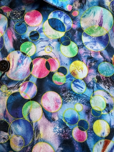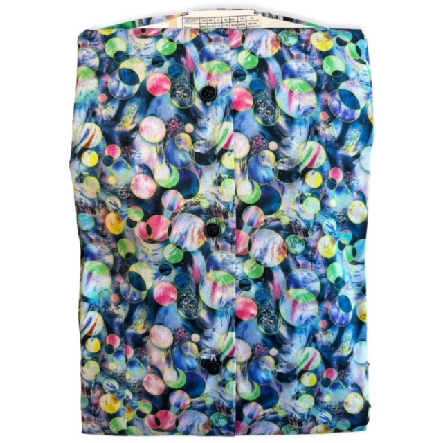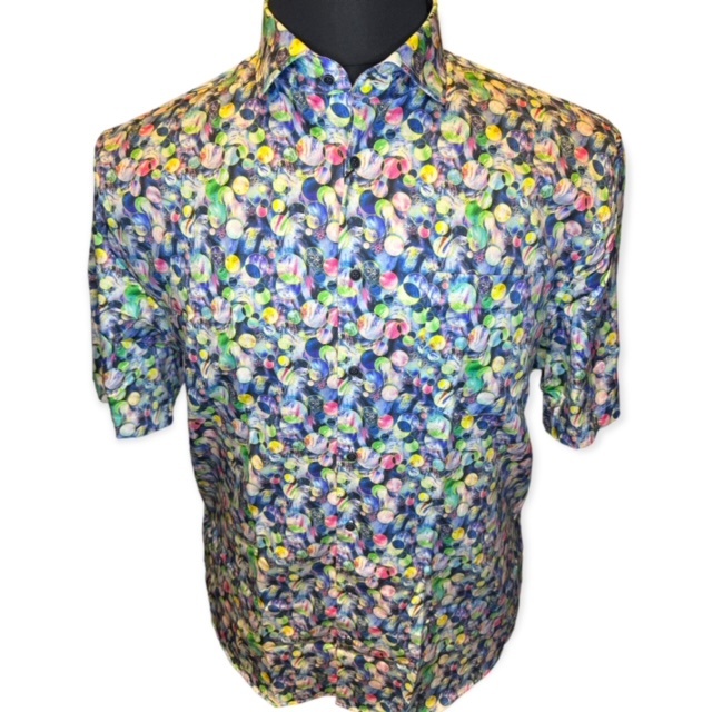 Ein modernes Sommerhemd Kurzarm von Fortunato in Blau mit Punktedruck. Das Hemd hat eine Brusttasche.