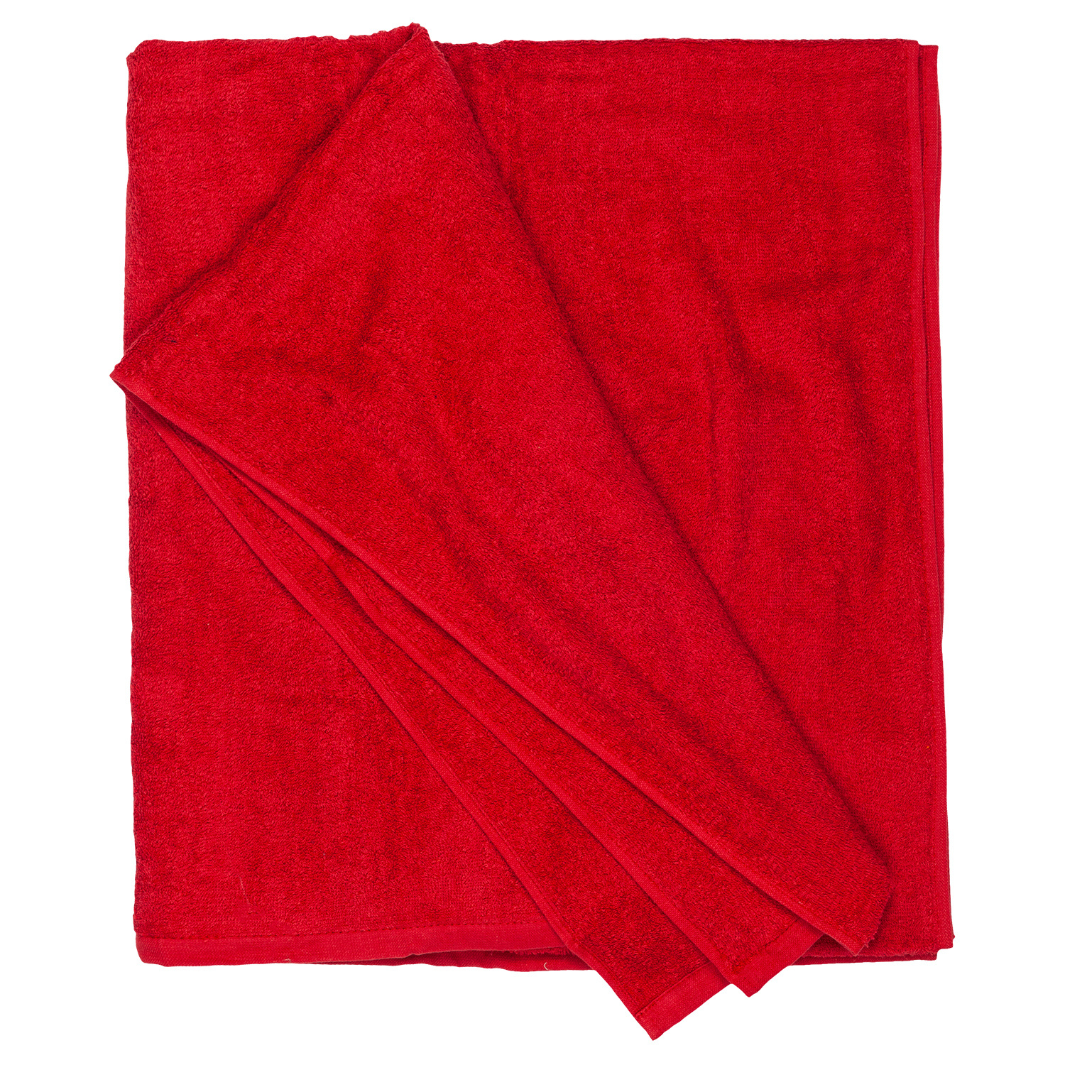 XXL Handtuch, Saunatuch, Strandtuch mit Aufhänger oben und unten in Rot. 100 % Baumwolle, Frottee 400 g/m².
