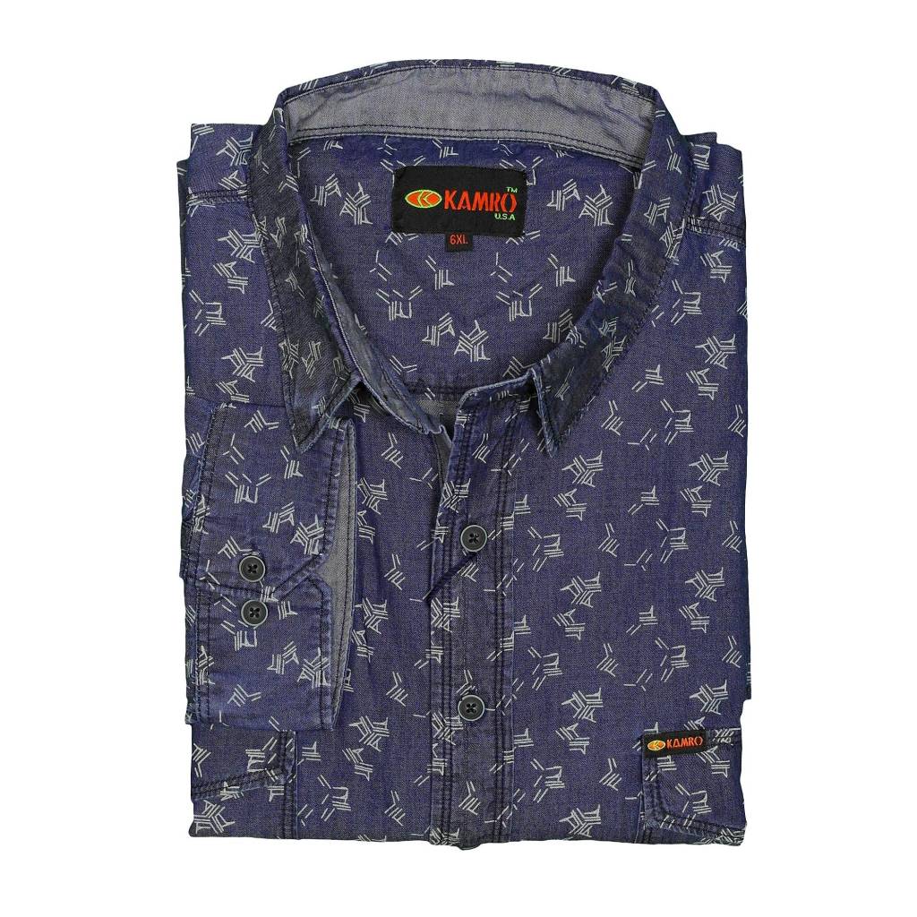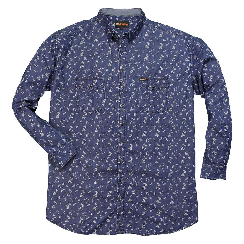 Schönes Hemd im Jeans-Look der Marke Kamro. Dieses Hemd hat lange Ärmel und Taschen auf der rechten und linken Brust. Farbe: blau (mit cremefarbenem Muster).