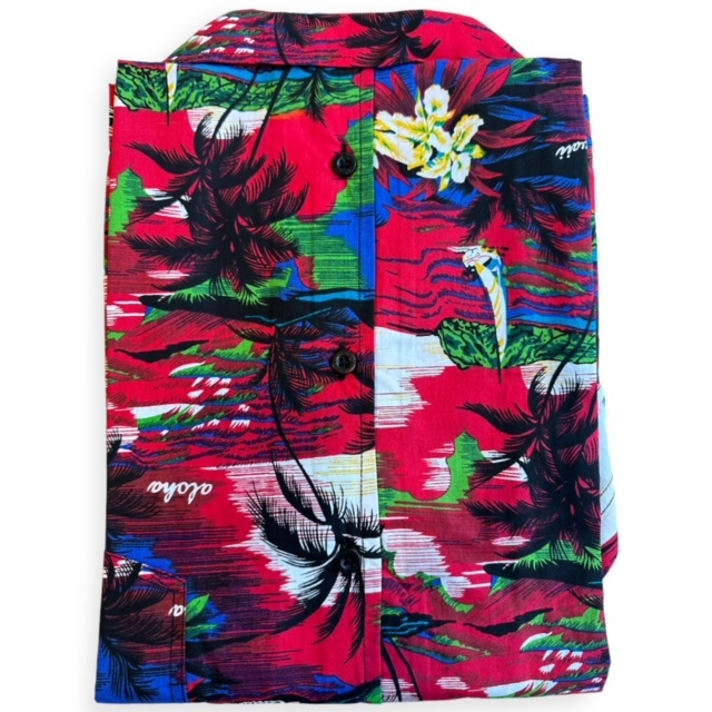 Ein modernes Hawaiihemd in Rot der Marke Kamro, das Hemd hat eine Brusttasche.
