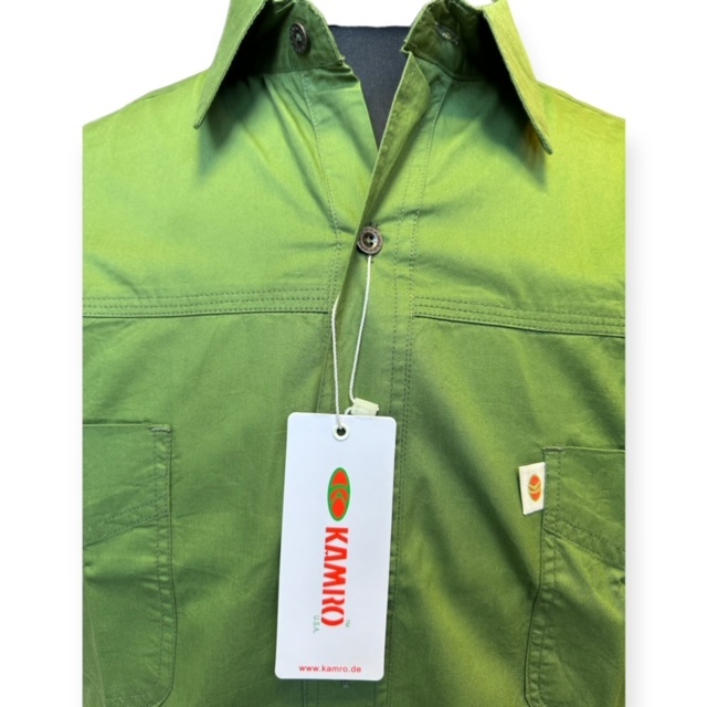 Ein lässiges Sommerhemd mit kurzen Ärmeln der Marke Kamro in Armeegrün, das Hemd hat 2 Brusttaschen.
