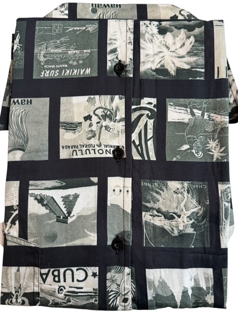 Ein modernes Hawaiihemd mit kurzen Ärmeln im 3D-Druck, das Hemd hat eine Brusttasche.