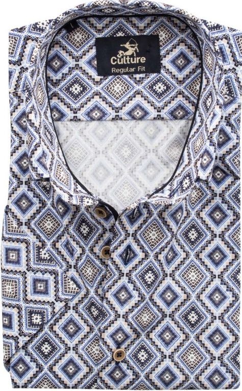 Ein schönes Designhemd der Marke Culture im Mosaikmotiv, das Hemd hat eine Brusttasche.