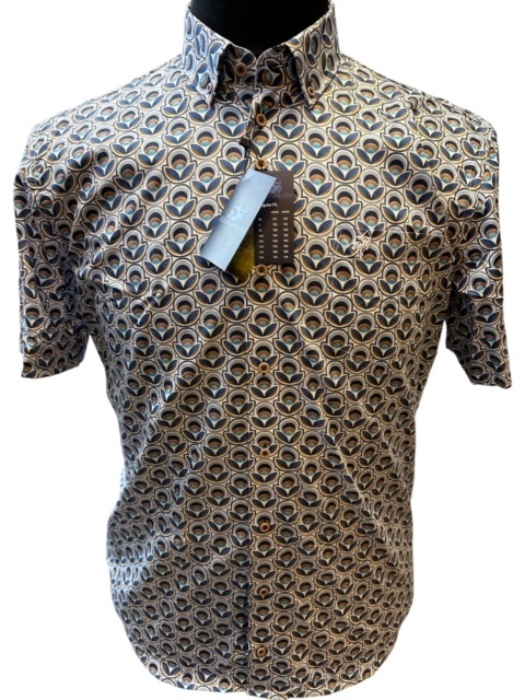 Ein Sommershirt im 3D-Druck (Retroblume) der Marke Eden Valley, das Shirt hat eine Brusttasche.
