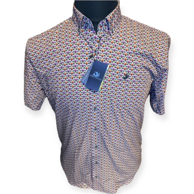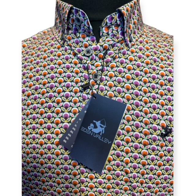 Ein Sommerhemd mit kurzen Ärmeln der Marke Eden Valley im 3D-Druck (Retro-Look). Das Hemd hat einen Button-Down-Kragen und eine Brusttasche.