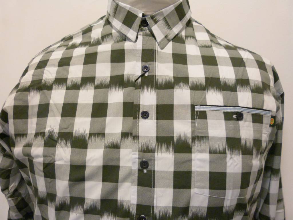 Ein kariertes Hemd von Kamro in der Farbe Weiß/Moosgrün. Details: Brusttasche und kleines Logo, sehr sauber verarbeitet.