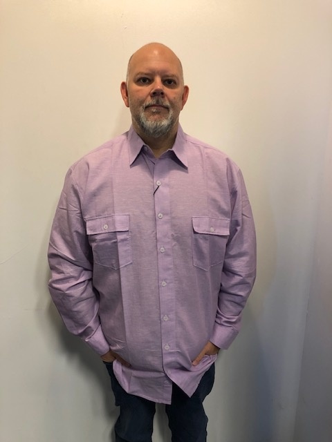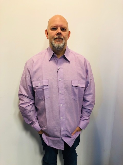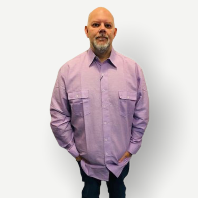 Ein lila Langarmshirt der Marke Kamro, das Shirt hat 2 Brusttaschen.