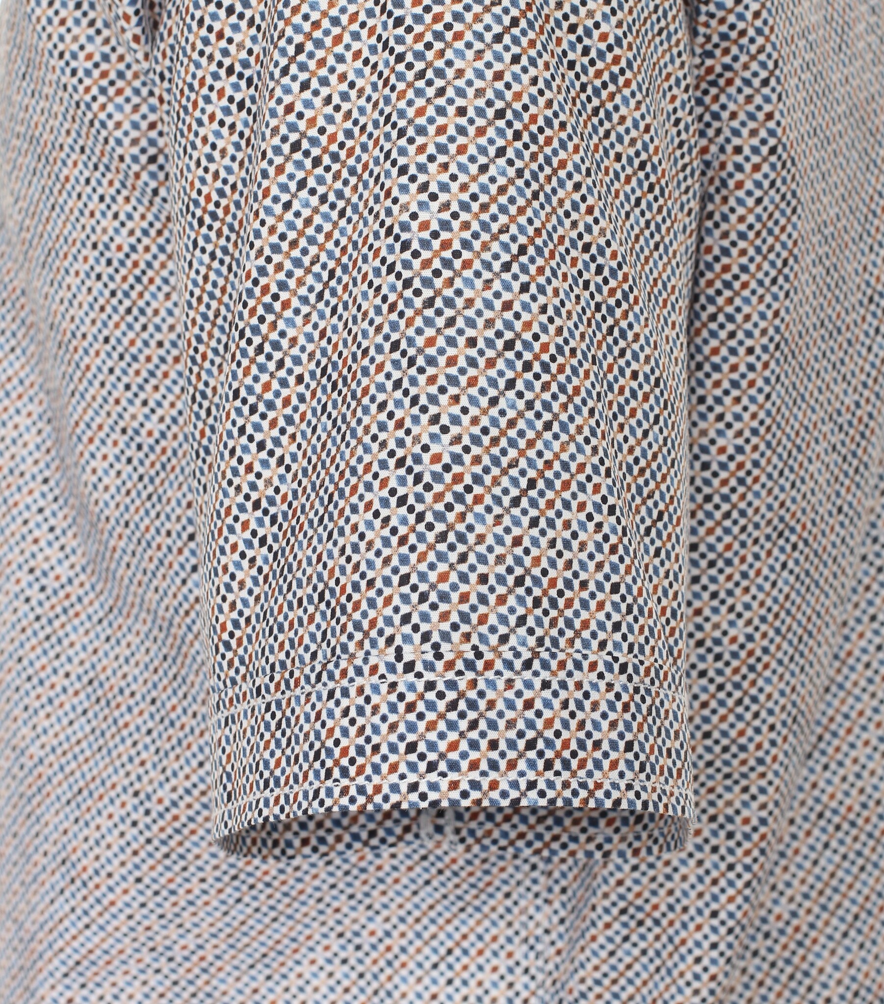 Ein Sommerhemd mit kurzen Ärmeln in Blau (Digitaldruck), das Hemd hat eine Brusttasche und einen Button-Down-Kragen.