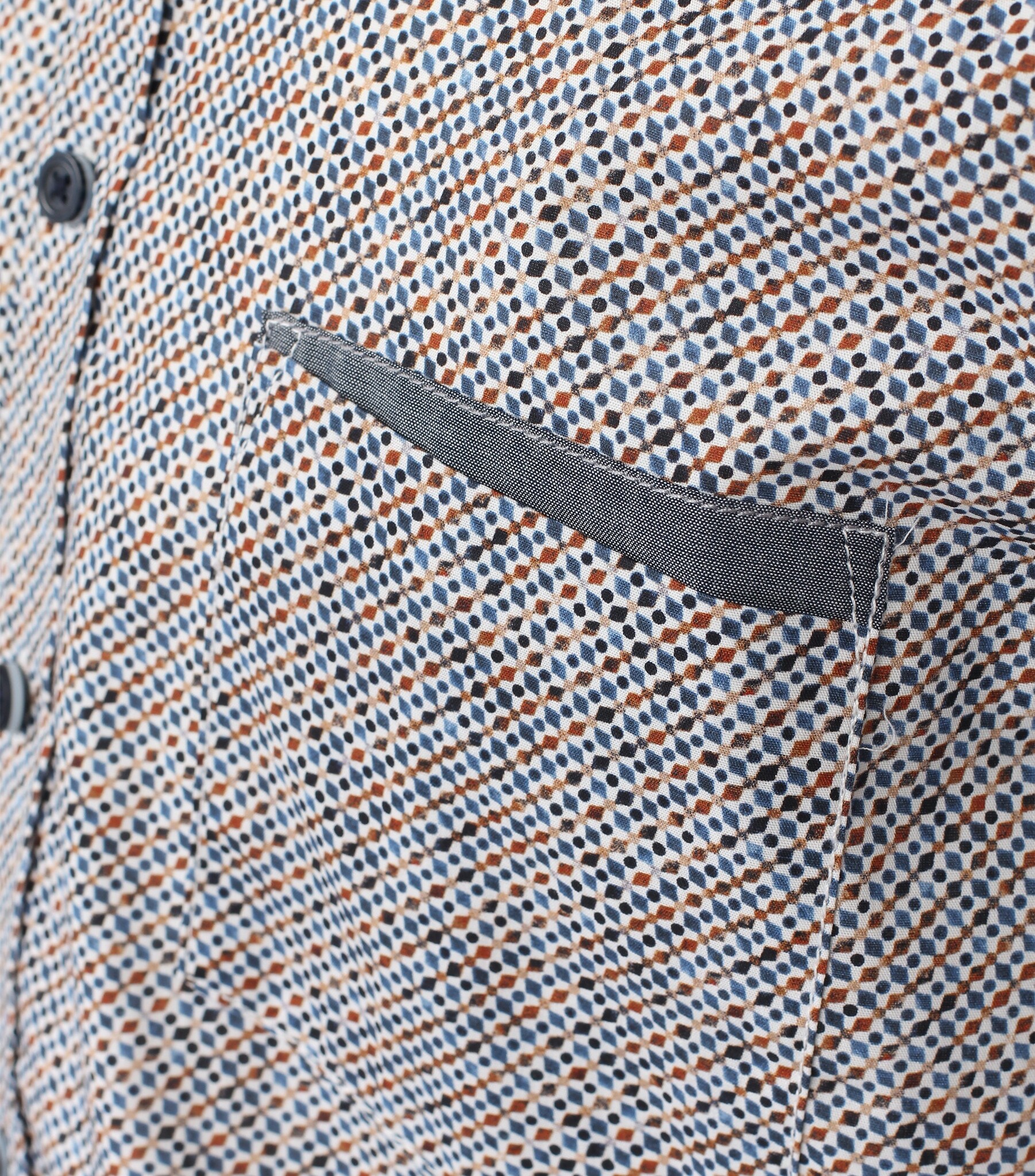 Ein Sommerhemd mit kurzen Ärmeln in Blau (Digitaldruck), das Hemd hat eine Brusttasche und einen Button-Down-Kragen.