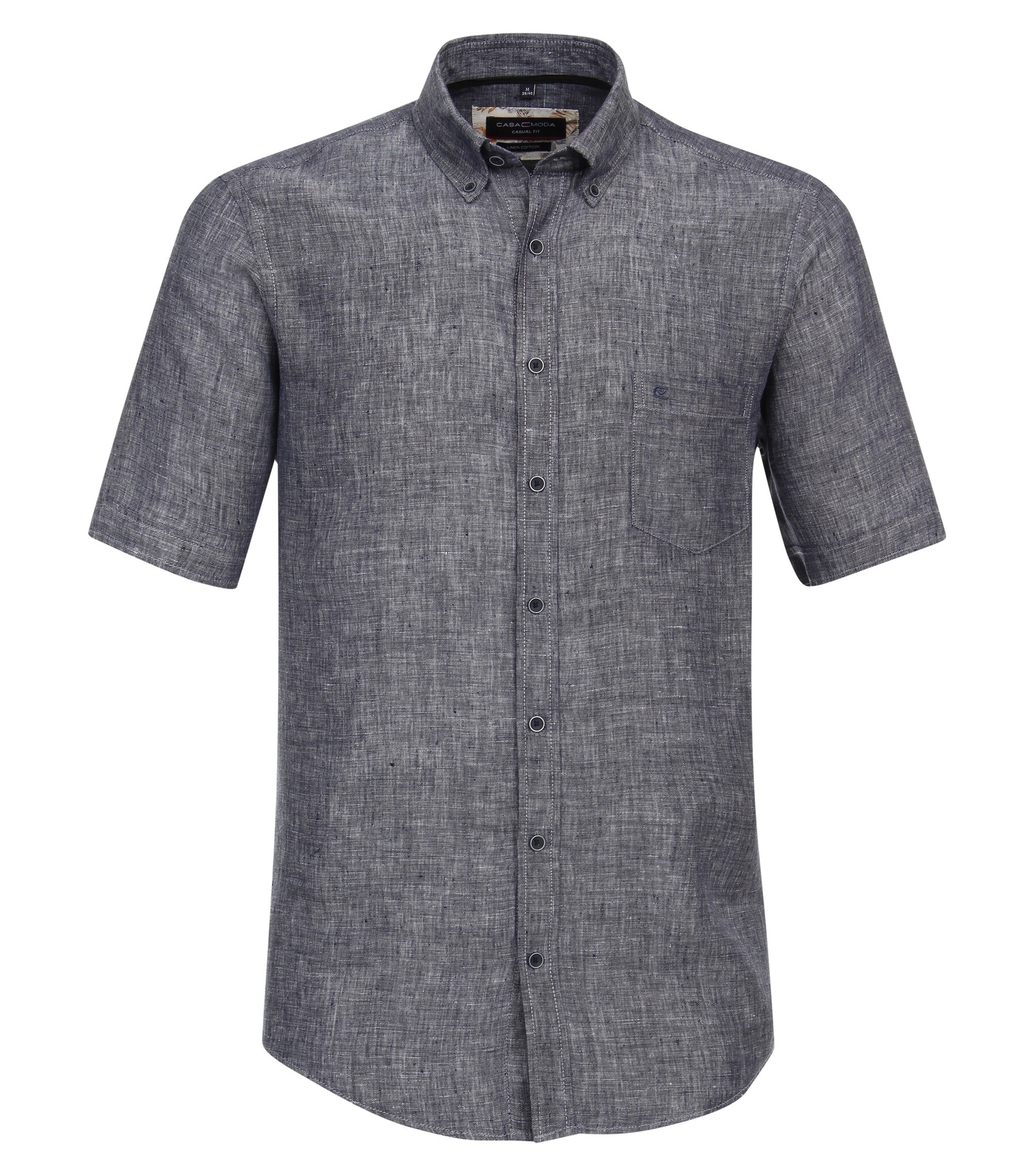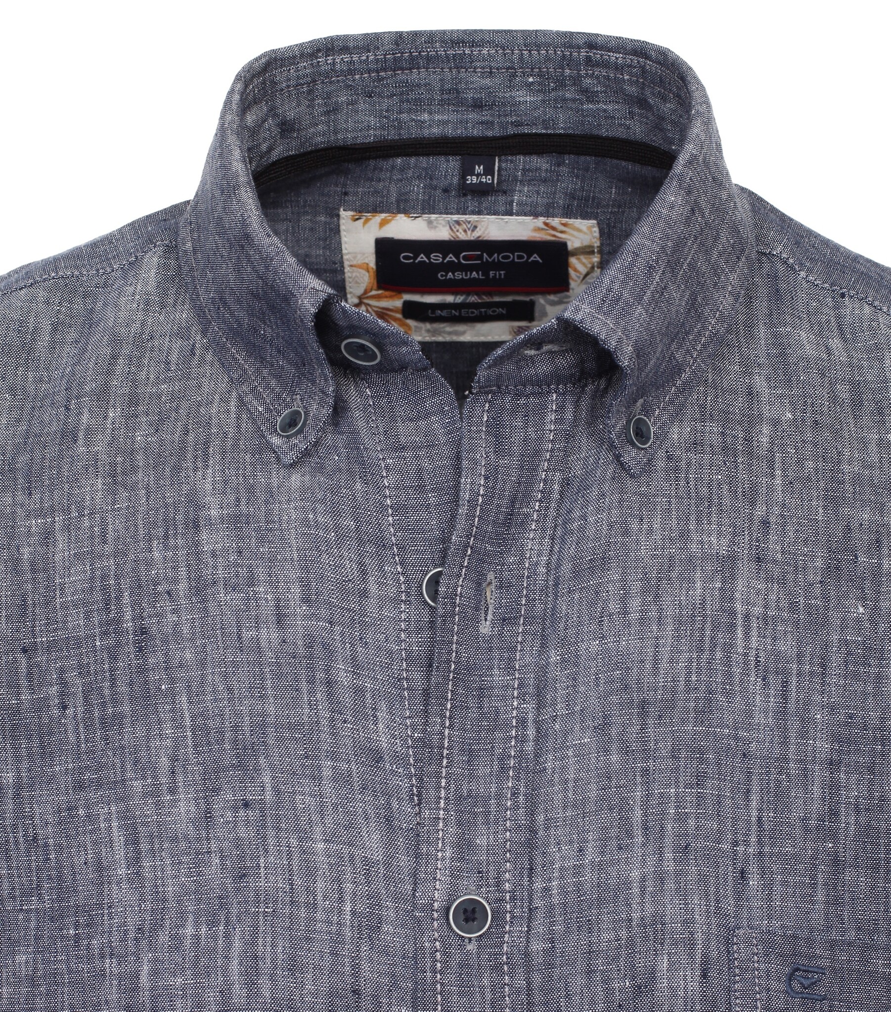 Ein schönes Sommerhemd aus 100 % Leinen in Blau, das Hemd hat eine Brusttasche.