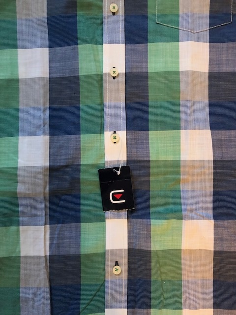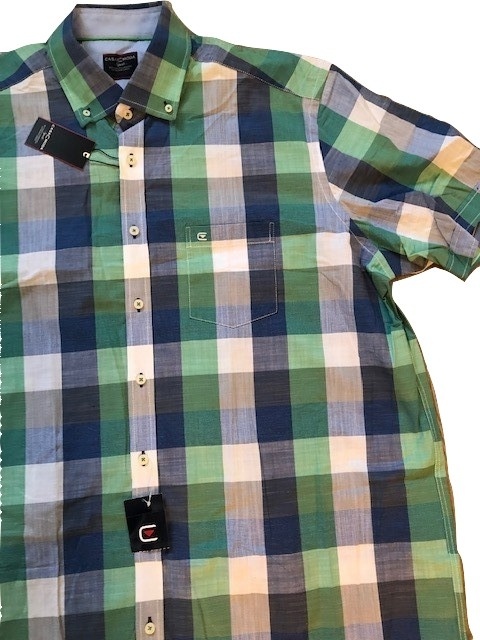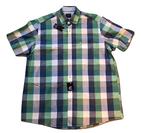 Sportliches Karohemd mit kurzen Ärmeln der Marke Casa Moda in Blau/Grün, das Hemd hat eine Brusttasche.