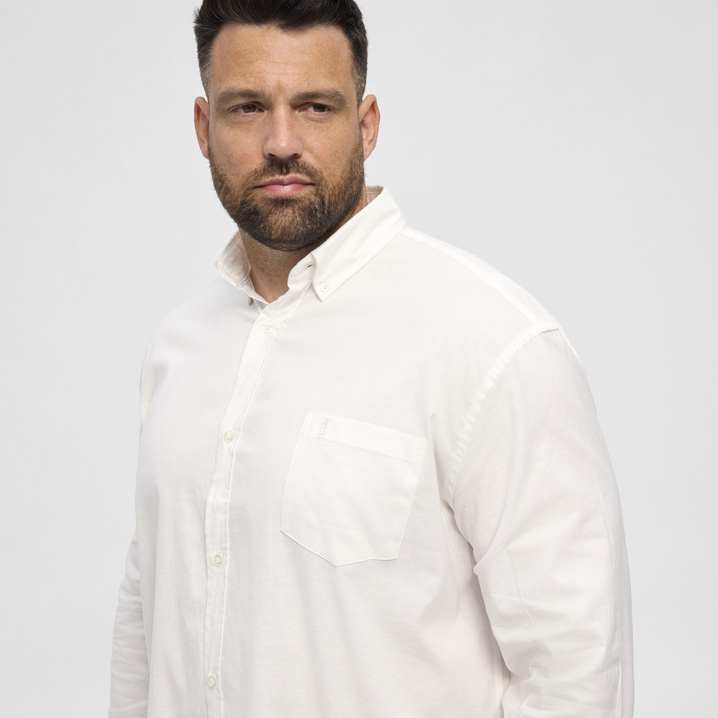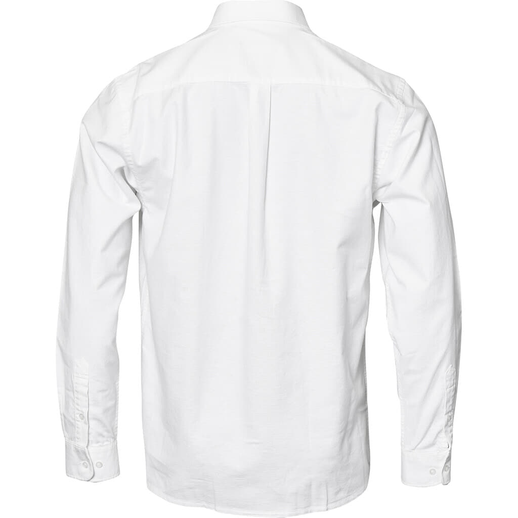 Ein Oxford-Hemd mit langen Ärmeln in Weiß von der Marke North Latitude. Das Hemd hat eine Brusttasche auf der linken Seite und Button-Down-Knöpfe im Kragen.