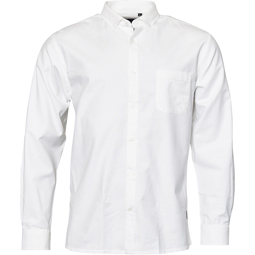Ein Oxford-Hemd mit langen Ärmeln in Weiß von der Marke North Latitude. Das Hemd hat eine Brusttasche auf der linken Seite und Button-Down-Knöpfe im Kragen.