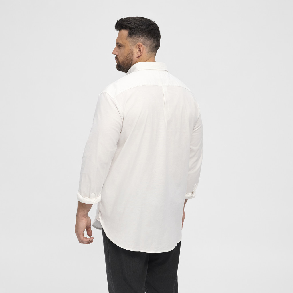 Ein Oxford-Hemd mit langen Ärmeln in Weiß von der Marke North Latitude. Das Hemd hat eine Brusttasche auf der linken Seite und Button-Down-Knöpfe im Kragen.