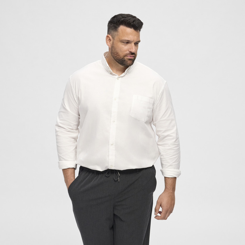 Ein Oxford-Hemd mit langen Ärmeln in Weiß von der Marke North Latitude. Das Hemd hat eine Brusttasche auf der linken Seite und Button-Down-Knöpfe im Kragen.