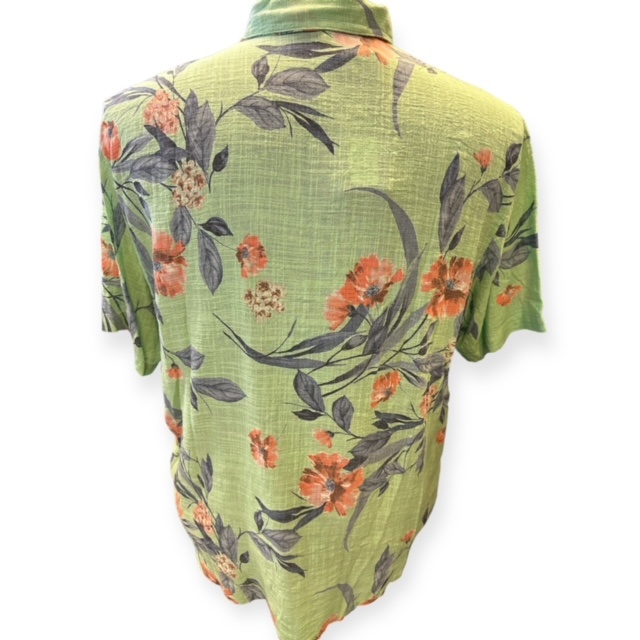 Ein luftiges Tropenshirt mit kurzen Ärmeln der Marke Maxfort in Limettengrün, das Shirt hat eine Brusttasche.