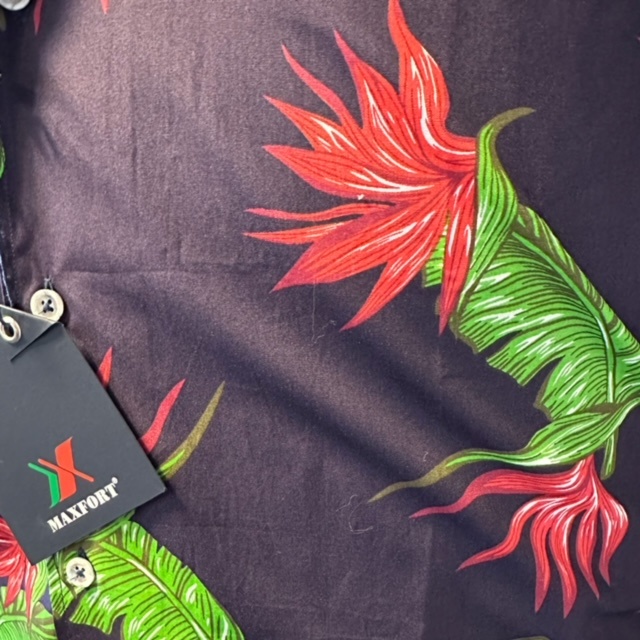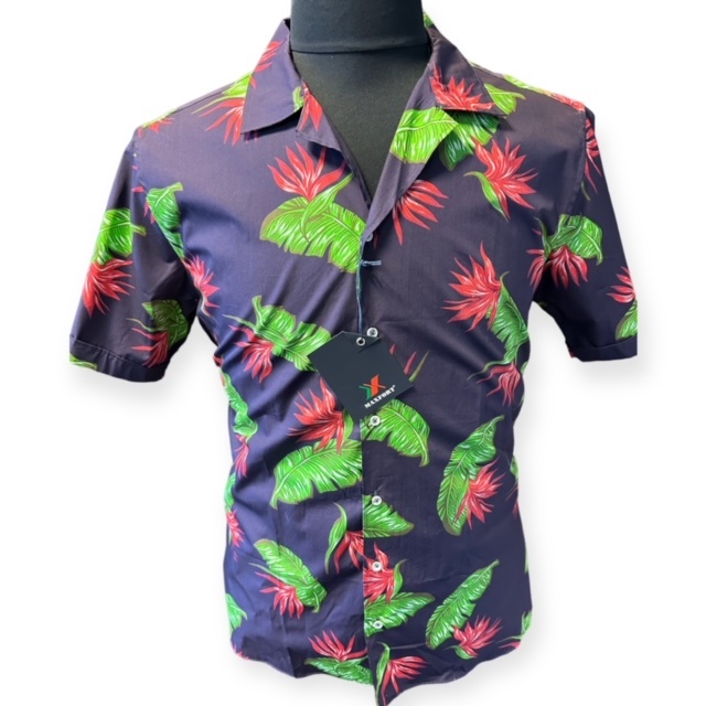 Ein Hawaiihemd von Maxfort in Schwarz, Weiß und Rot. Ein ideales Hemd für ein tropisches Reiseziel.