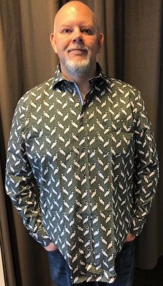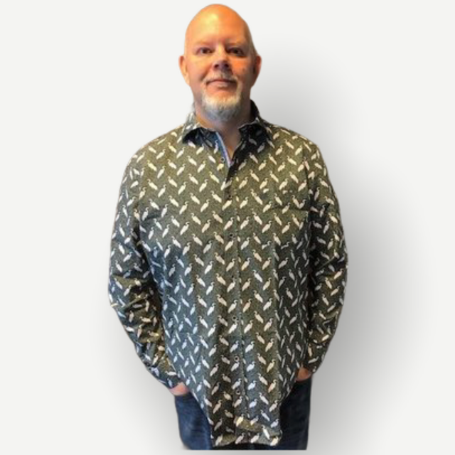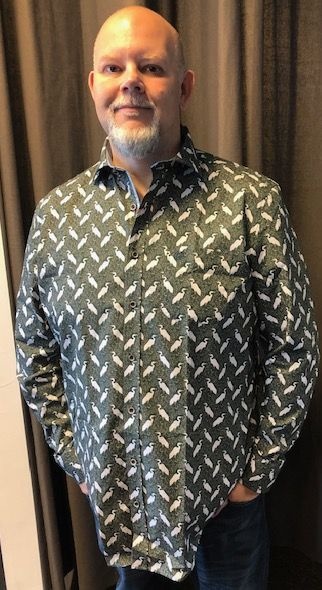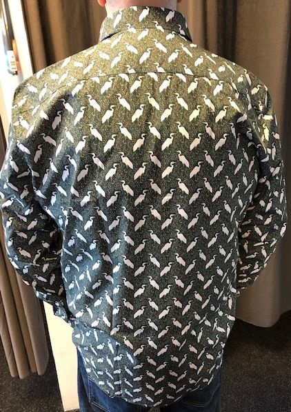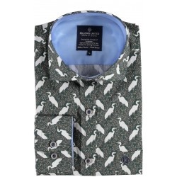 Langarmhemd mit Reiher-Motiv. Brusttasche. Unifarbene Kontrast-Rückseite an Manschetten und Kragen. 100 % Baumwolle. Normale Passform.