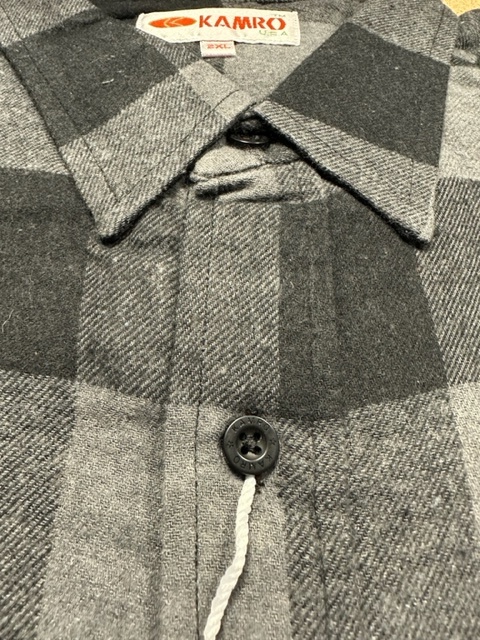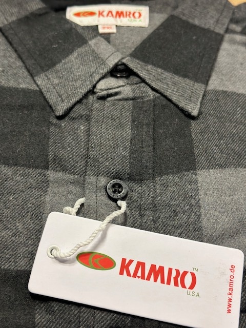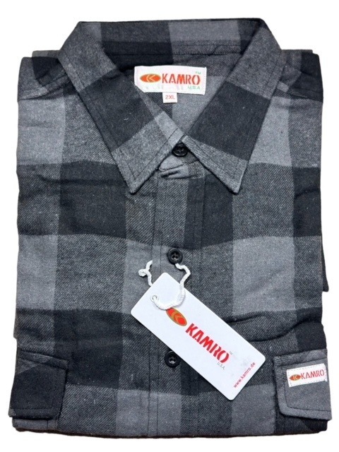 Ein warmes Holzfäller-Fleeceshirt der Marke Kamro in der Farbe Grau/Schwarz, das Shirt hat eine Brusttasche.