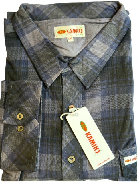 Ein warmes Holzfällerhemd der Marke Kamro in Blau, das Hemd hat 2 Brusttaschen auf der Vorderseite.