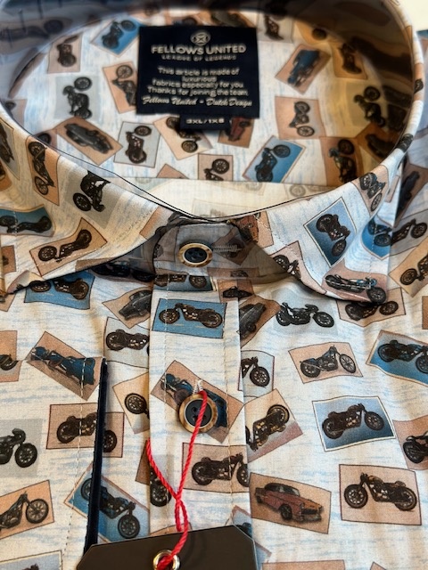 Ein cooles lässiges Langarmshirt der Marke Fellows United mit einem Aufdruck von Motorrädern und Autos, das Shirt hat eine Brusttasche.