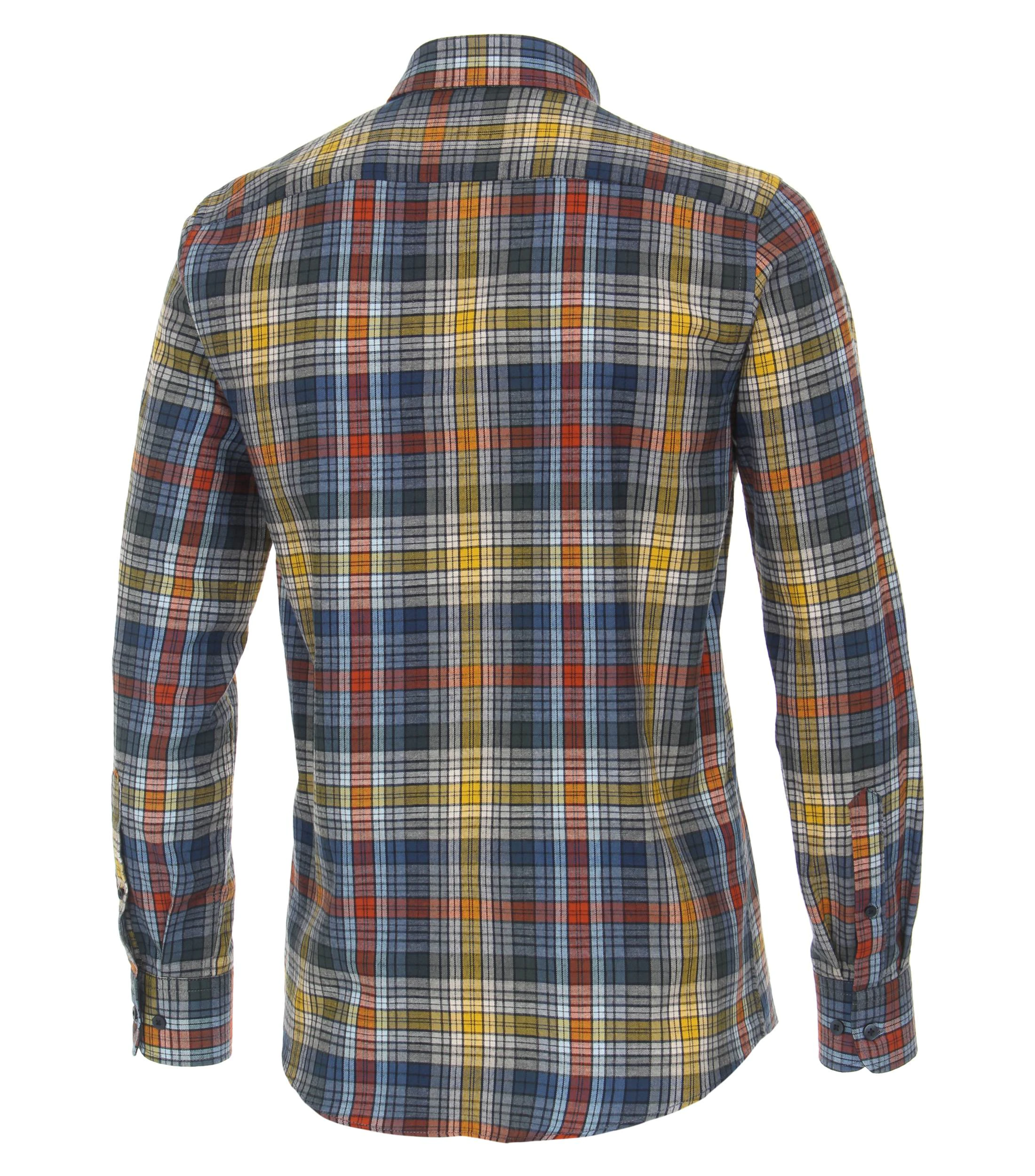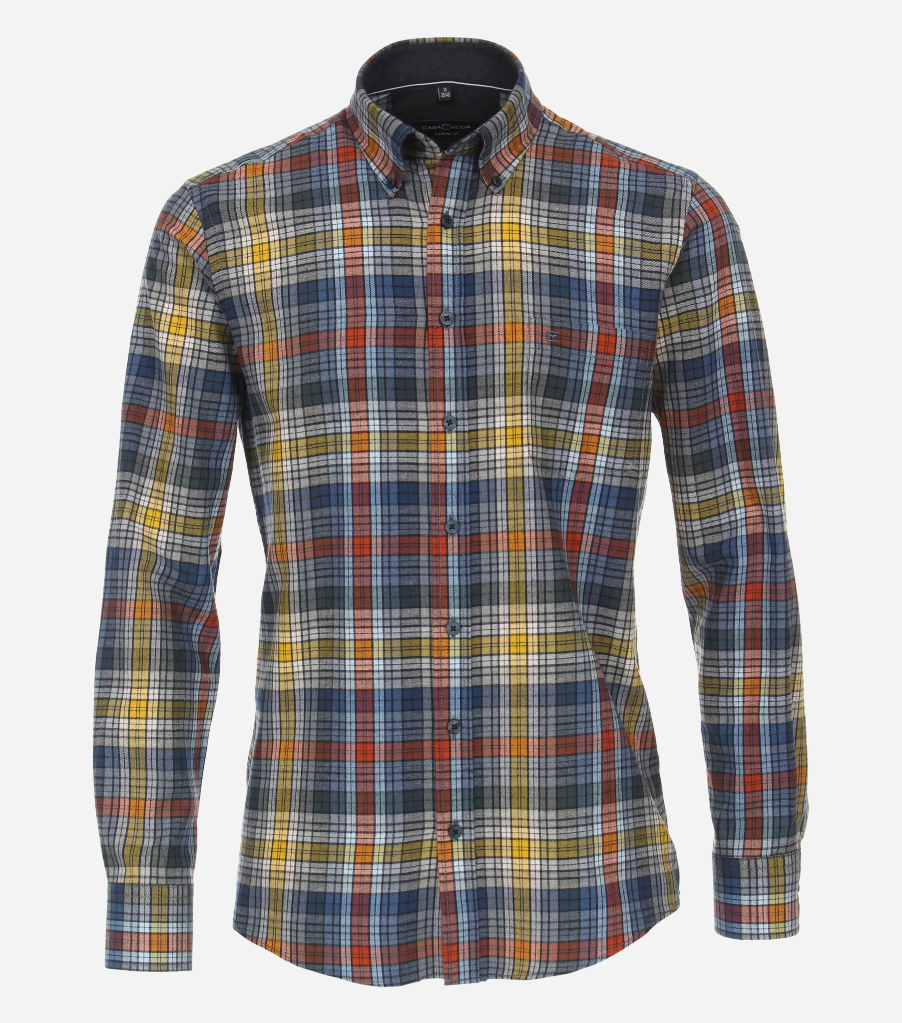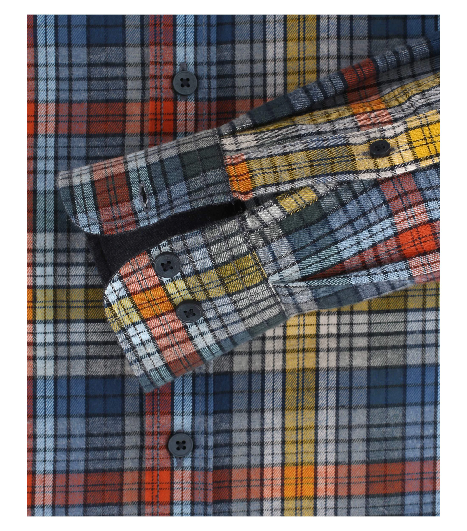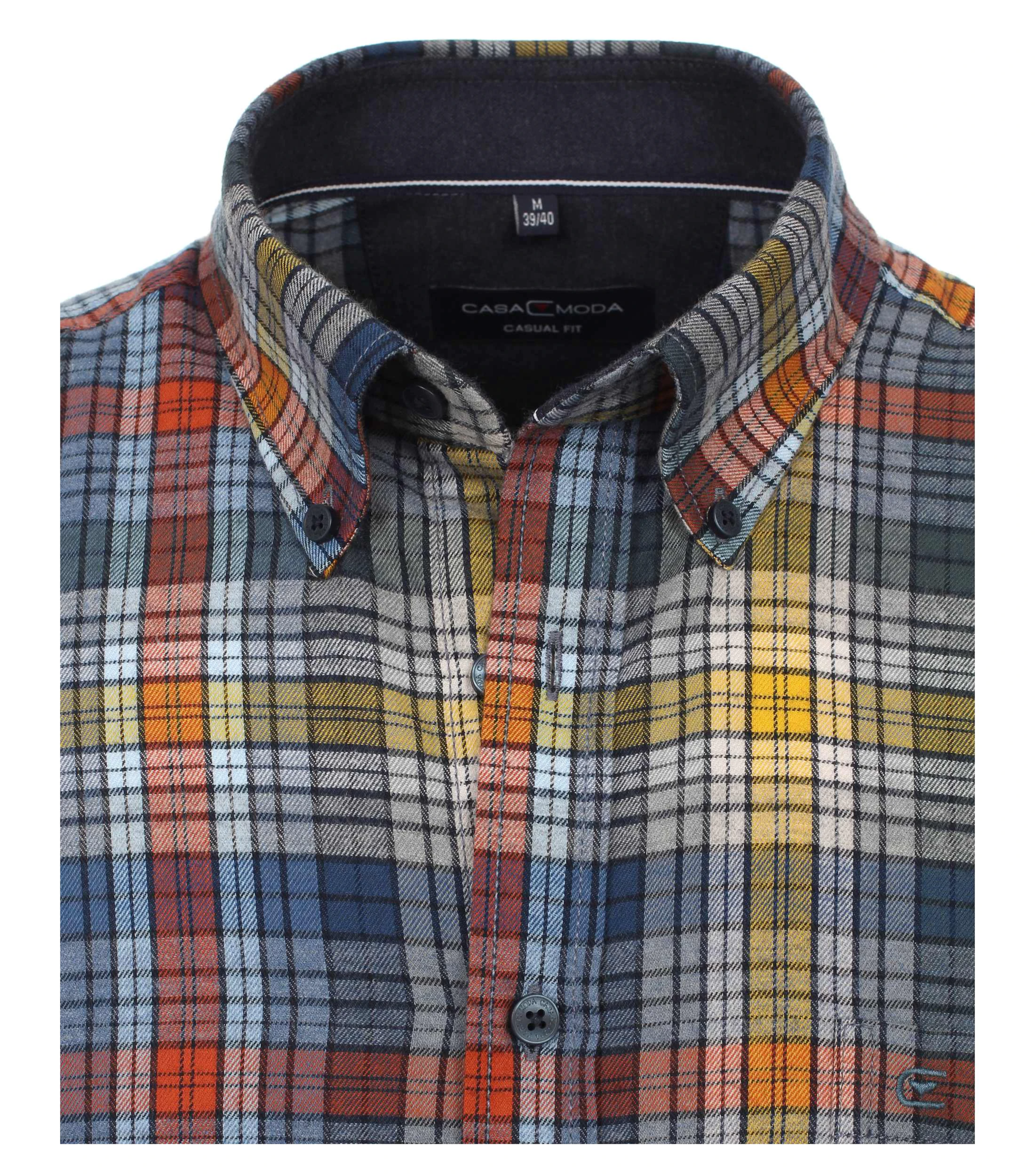 Ein Flanellhemd (Lumberjacks) von Casa Moda in der Farbe Rost/Gelb kariert. Das Hemd hat eine Brusttasche.