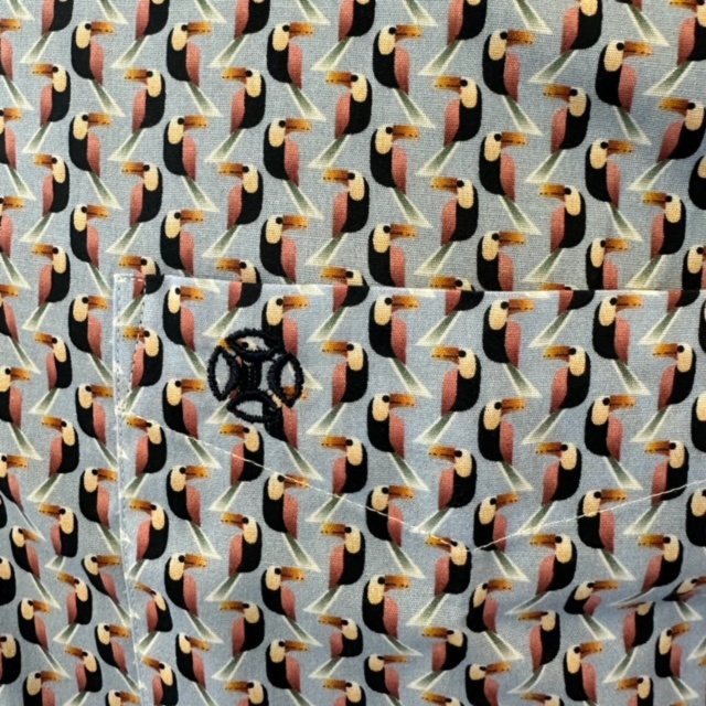 Ein modernes Shirt der Marke Fellows United in der Farbe Blau. Das Shirt hat einen 3D-Aufdruck von Tucan und eine Brusttasche.