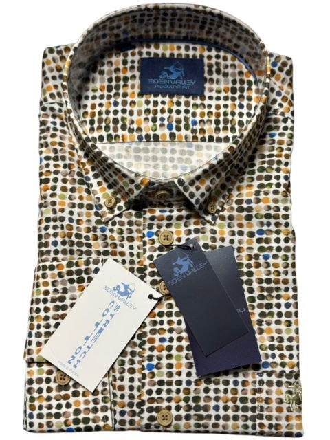 Ein schickes Langarmshirt der Marke Eden Valley mit Punktmuster-Aufdruck, das Shirt hat eine Brusttasche.