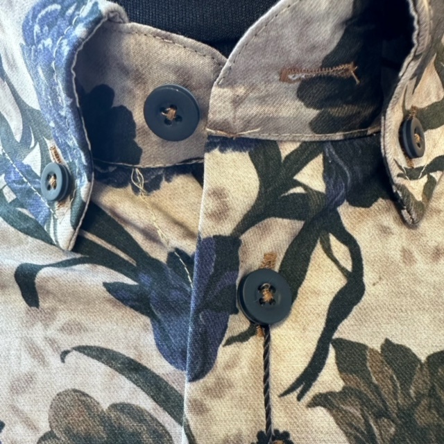 Ein modernes Langarmhemd der Marke Eden Valley. Das Hemd hat ein Blumen-/Blattmuster und eine Brusttasche