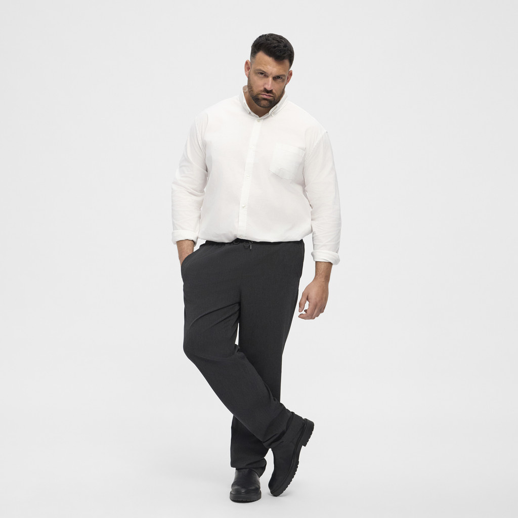 Eine schöne Freizeithose mit Viskose und Elasthan in der Farbe Dunkelgrau. Dank des Gummibunds und des Kordelzugs ist die Hose sehr bequem. Die Hose lässt sich mit allem kombinieren.