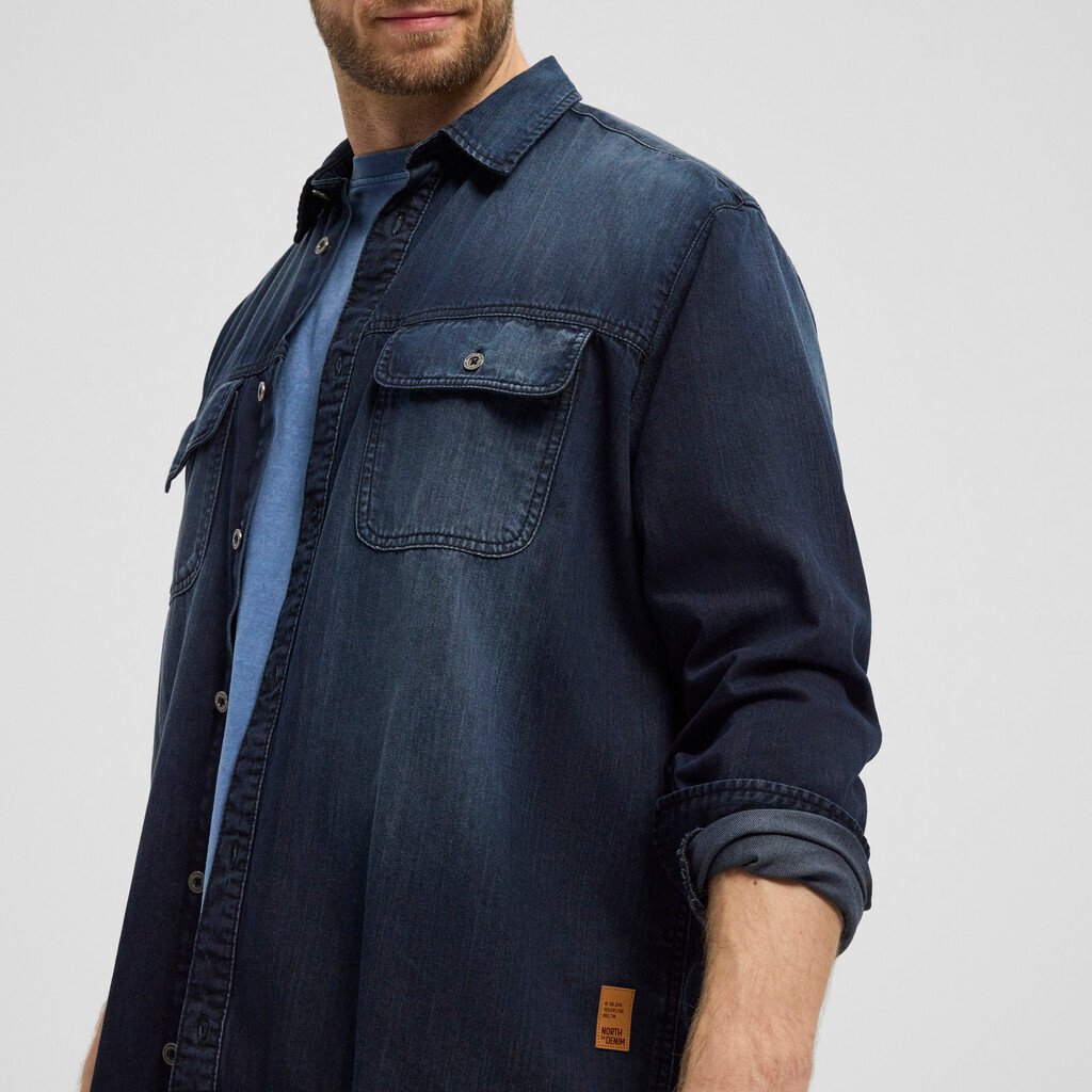 Ein cooles Jeanshemd mit langen Ärmeln der Marke North Latitude Denim. Das Hemd hat 2 Brusttaschen und eine helle Waschung.