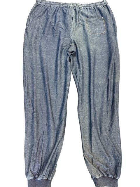 Eine Jogginghose in der Farbe Jeansblau, Hose hat die Länge 38/40 und ist mit Seitentaschen und Gesäßtasche ausgestattet.