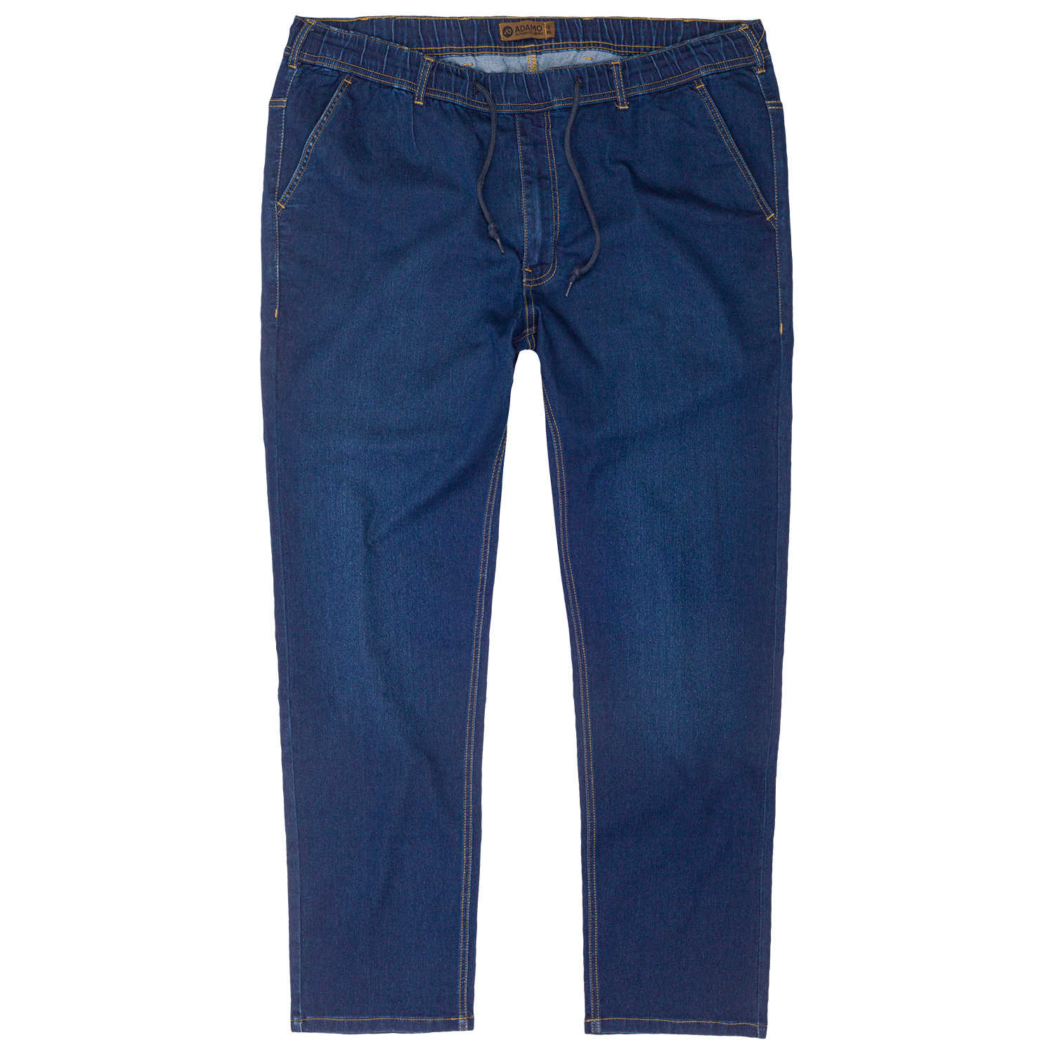 Eine schöne Jogginghose im Jeans-Look. Die Hose hat einen Gummibund mit Kordelzug und Schlaufen für einen Gürtel. Farbe: Marineblau.