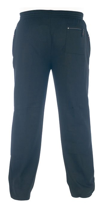Jogginghose der Marke D555 (Duke) in der Farbe Schwarz. Die Hose hat Reißverschlusstaschen vorne und hinten. Die Hose ist außerdem mit einem Kordelzug versehen.