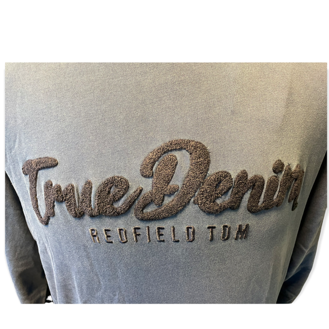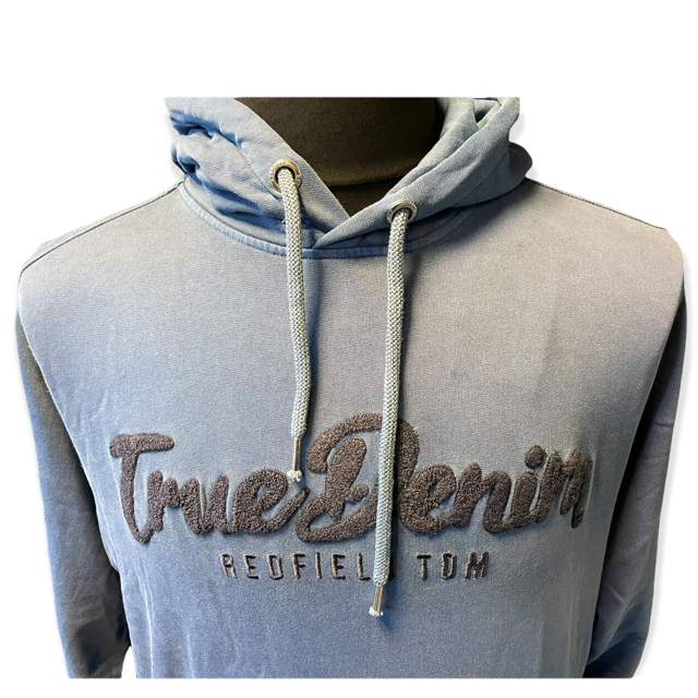 Ein Sweater-Hoodie der Marke Redfield in Blau mit Aufdruck.