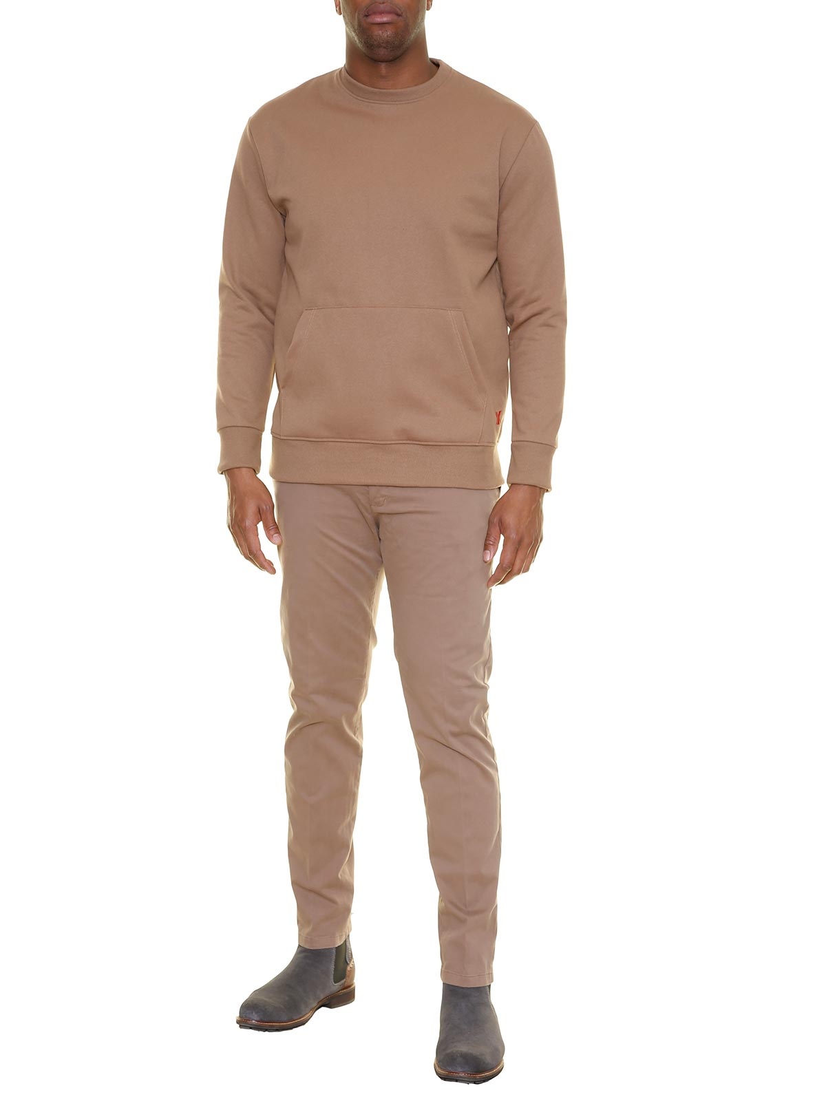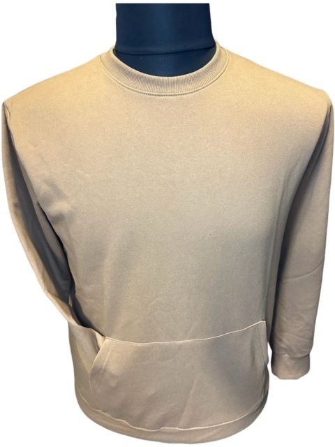 Ein warmer Kapuzenpullover der Marke Maxfort in Braun, der Hoody hat Seitentaschen und Patches an den Ärmeln.