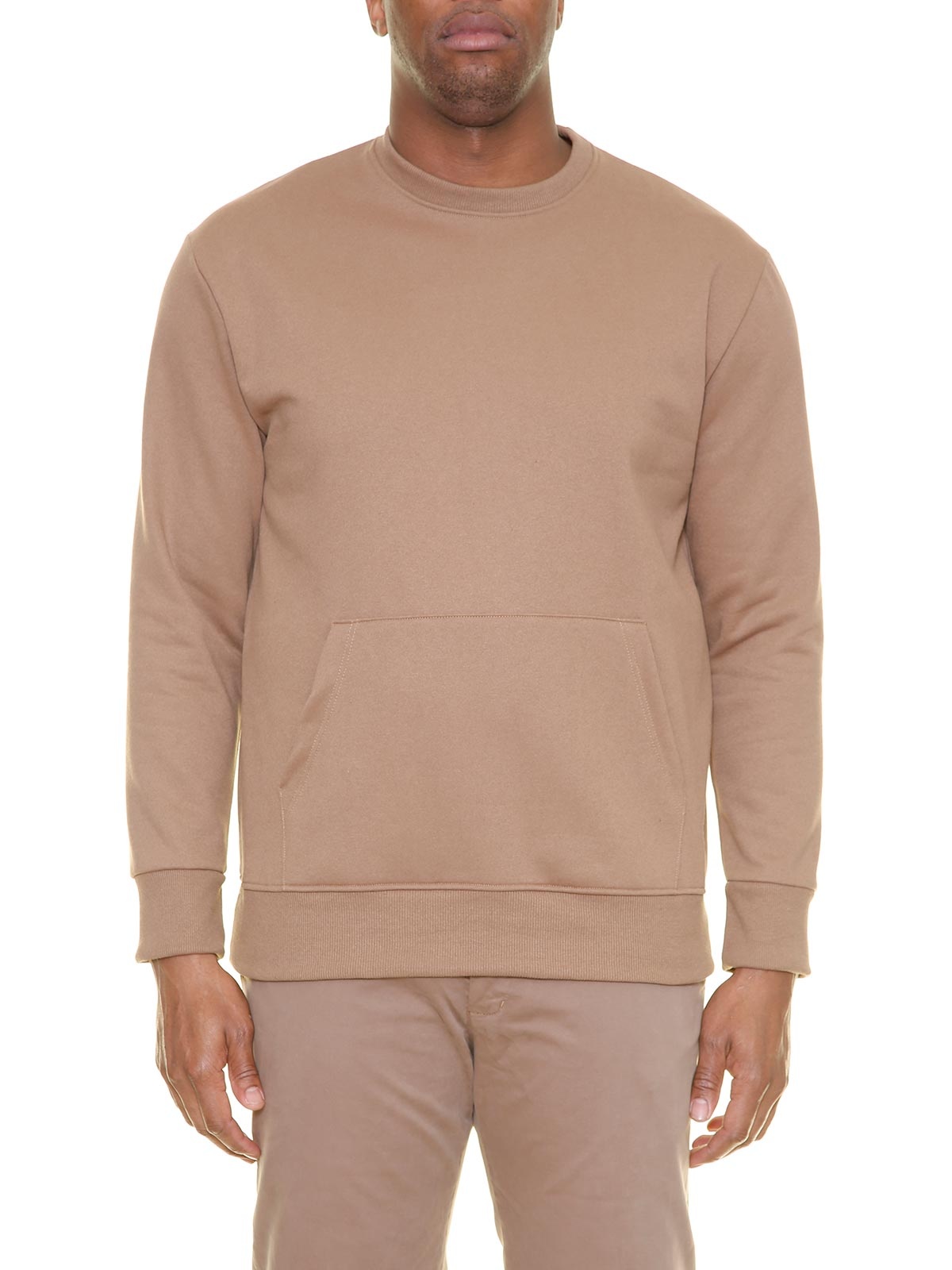 Ein warmer Kapuzenpullover der Marke Maxfort in Braun, der Hoody hat Seitentaschen und Patches an den Ärmeln.