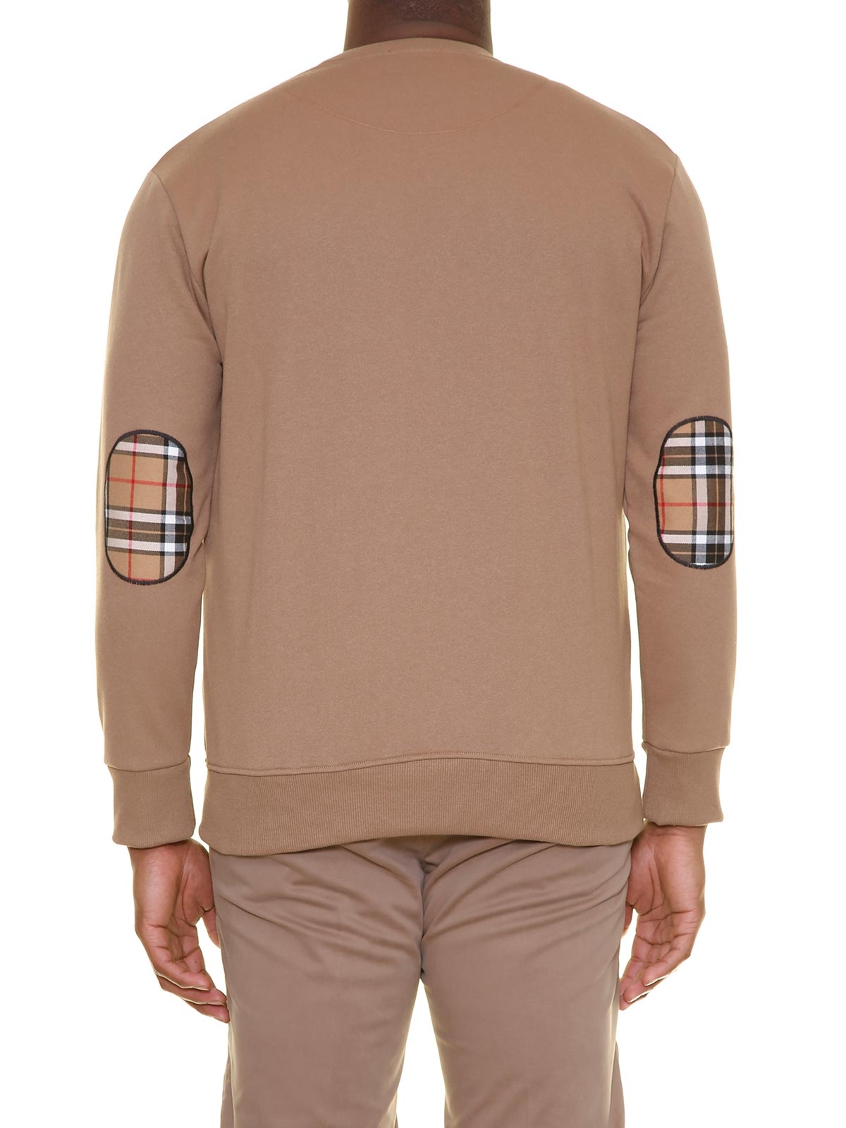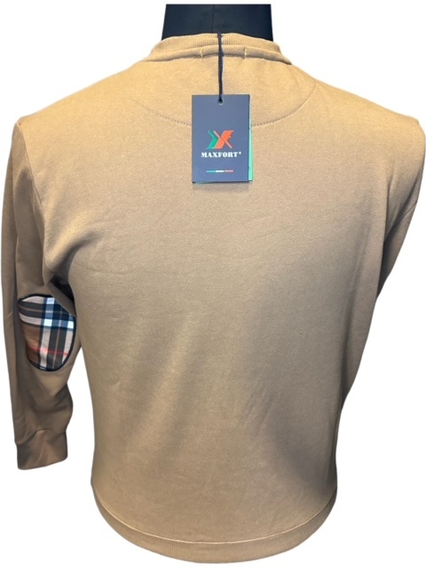 Ein warmer Kapuzenpullover der Marke Maxfort in Braun, der Hoody hat Seitentaschen und Patches an den Ärmeln.
