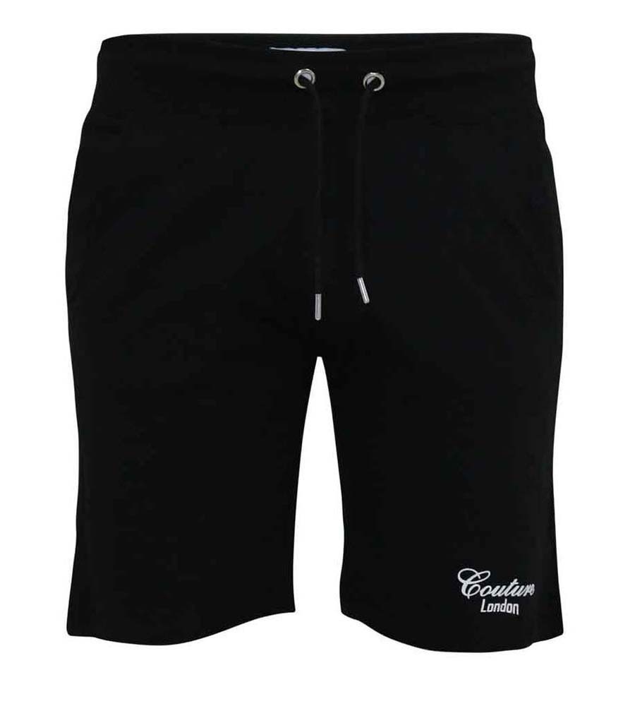 Eine schwarze Baumwollshort mit dem Aufdruck auf der linken Seite „Couture“. Die Hose kann als Set mit Artikel 601305 getragen werden.