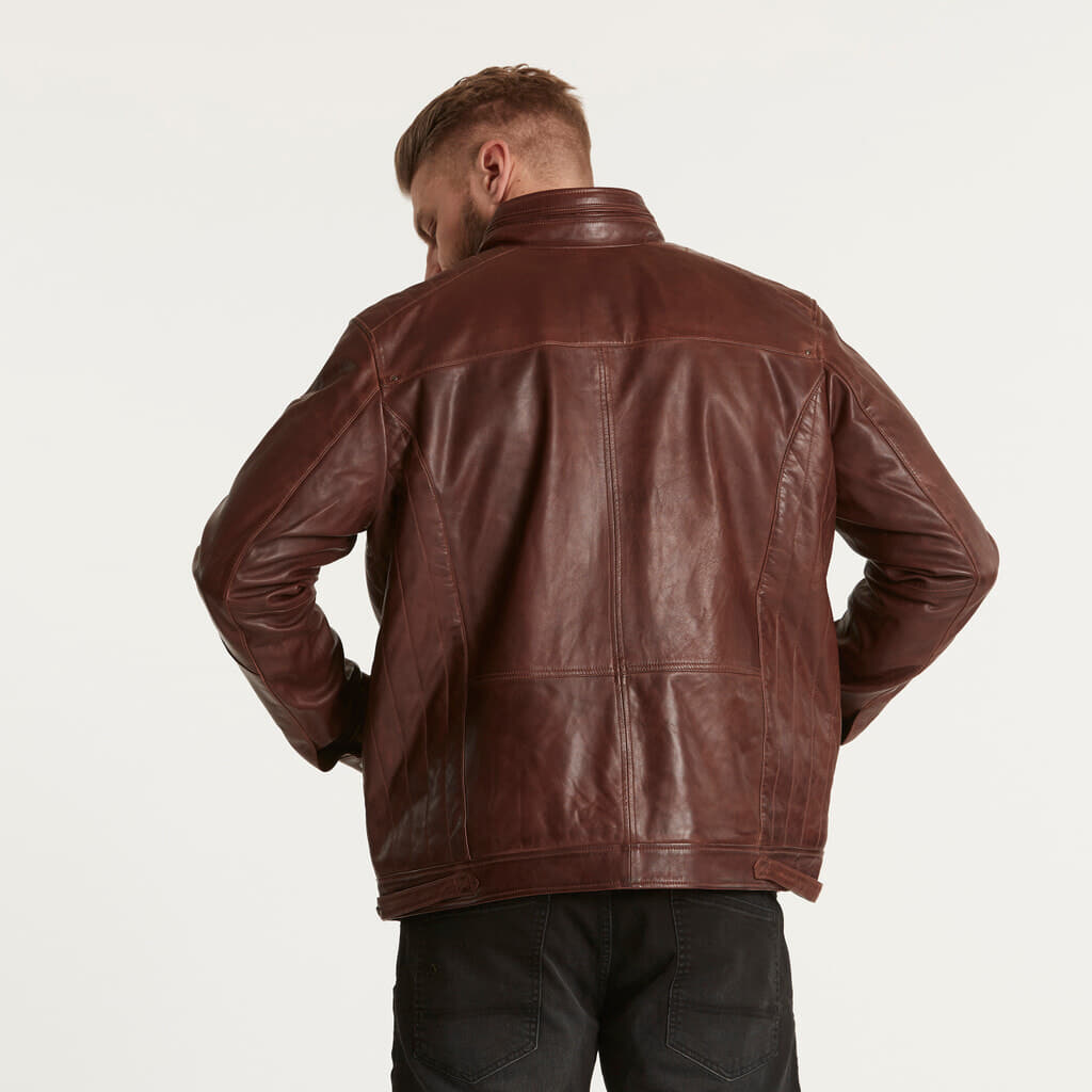 Eine robuste Biker-Lederjacke aus Lammfell in der Farbe Bronze, sehr anschmiegsame weiche Lederjacke. Ausgestattet mit Innen- und Außentaschen.