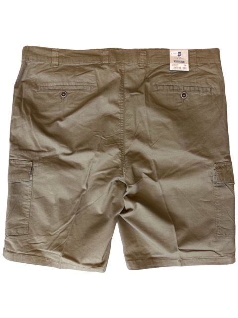 Eine moderne Cargo-Shorts in Taupe, die Shorts hat Seitentaschen, 2 Eingrifftaschen und 2 Gesäßtaschen.