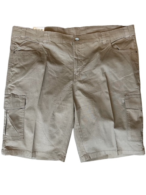 Eine moderne Cargo-Shorts in Taupe, die Shorts hat Seitentaschen, 2 Eingrifftaschen und 2 Gesäßtaschen.
