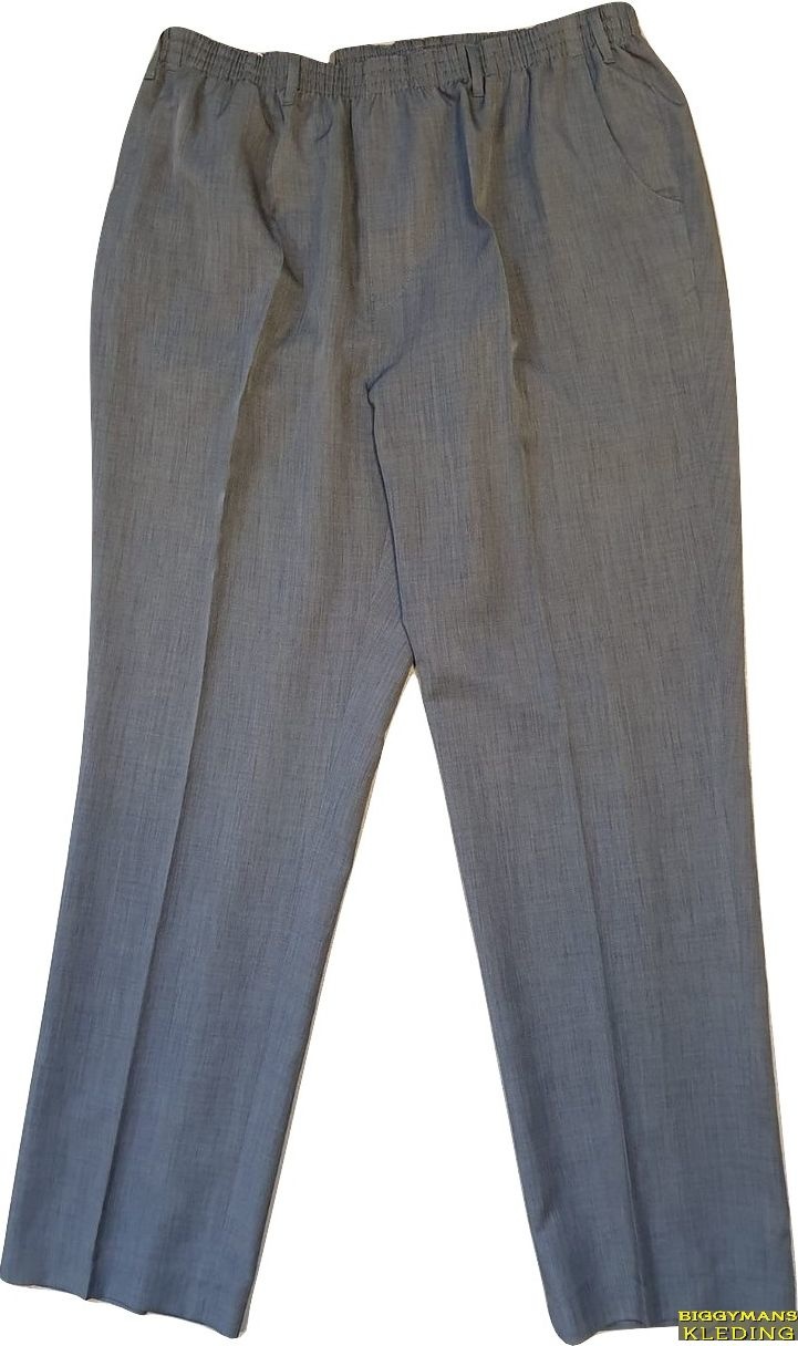 Eine bequeme Hose mit elastischem Bund in Grau von Luigi Morini. Die Hose hat zwei Eingrifftaschen und eine Gesäßtasche mit Knopfverschluss.